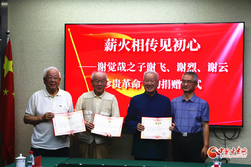 中国甘肃网7月24日讯(西北角·中国甘肃网记者 刘姗 实习生 元翔宇)7月24日,老一辈革命家谢觉哉、王定国的子女及亲属谢飞、谢烈、谢云向八路军兰州办事处纪念馆捐赠珍贵文物,以实际行动传承红色基因。