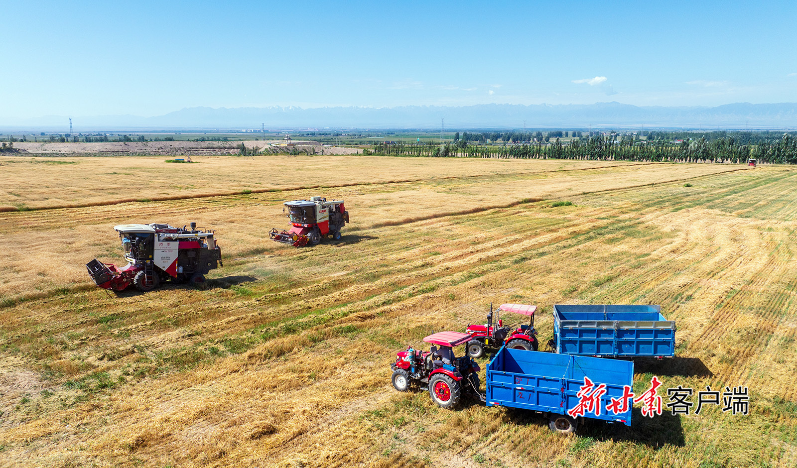 原标题:张掖:风吹麦浪抢收忙