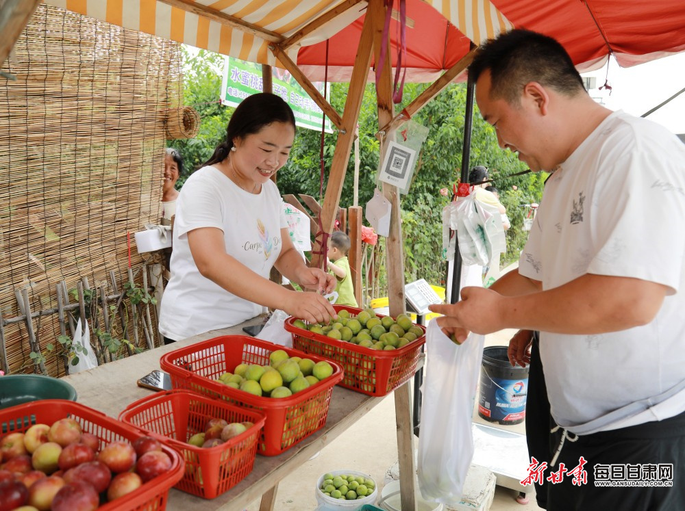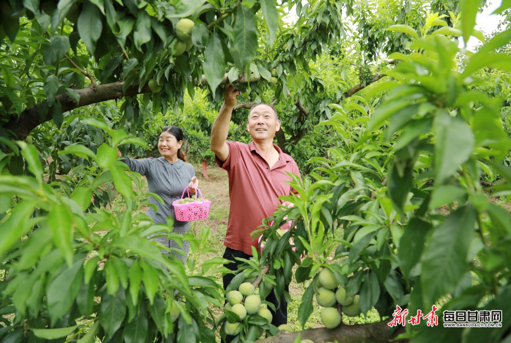 7月20日,陇南市徽县泥阳镇乔王村的果园里,红桃压枝、脆李垂梢,空气中弥漫着清甜的果香。果农们穿梭林间,将刚摘下的鲜果分拣装箱,手机屏幕上直播订单不断跳动;游客们提着果篮,边摘边尝,欢声笑语在田埂间回荡——这是当地“花果之乡”采摘节里最鲜活的场景。