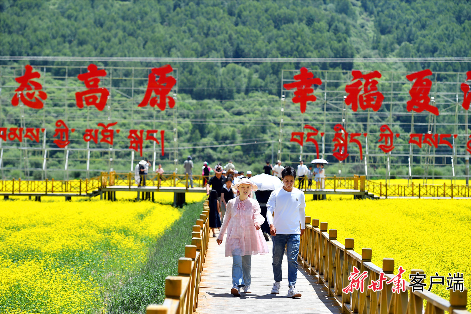 7月17日,夏河县博拉镇集中连片的油菜花进入盛花期。金黄花带沿博拉河谷绵延近十公里;海拔约3000米的高原阳光下,花田与青稞地色块交织,藏式民居点缀其中,远山暗绿,近景明黄,反差鲜明。国道沿线观景台上,省内外游客纷纷驻足拍照打卡。