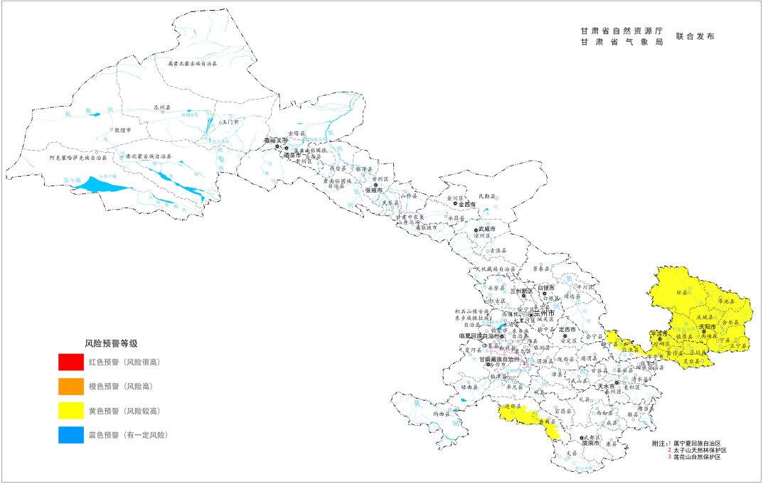 甘肃省自然资源厅、甘肃省气象局于2025年7月25日18时30分联合发布地质灾害气象风险预警:7月25日18时30分至7月26日18时30分,甘肃省甘南藏族自治州(舟曲县、迭部县),庆阳市(西峰区、庆城县、环县、华池县、合水县、正宁县、宁县、镇原县),平凉市(崆峒区、泾川县、灵台县、崇信县、庄浪县、静宁县、华亭市)发生崩塌、滑坡、泥石流等地质灾害的风险较高(黄色预警),请注意防范。