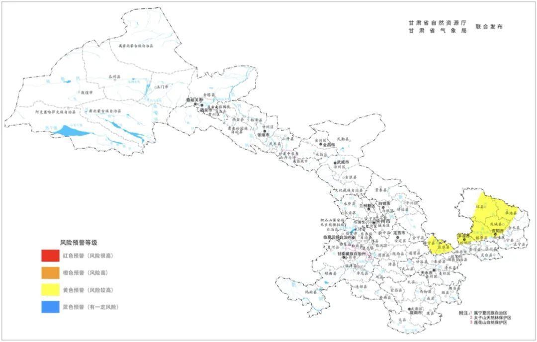 今天上午,甘肃省自然资源厅、甘肃省气象局联合发布地质灾害气象风险预警。预计7月27日6时40分至7月28日6时40分,庆阳市(西峰区、庆城县、环县、华池县、合水县、镇原县),平凉市(崆峒区、庄浪县、静宁县)发生崩塌、滑坡等地质灾害的风险较高(黄色预警),需注意防范。