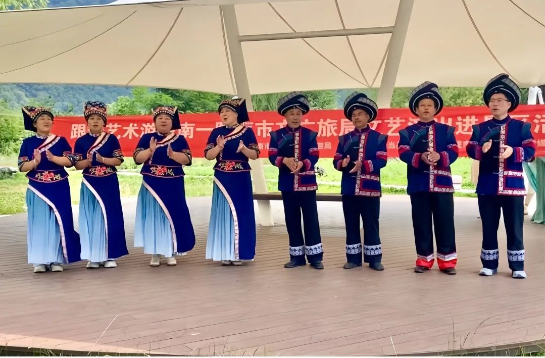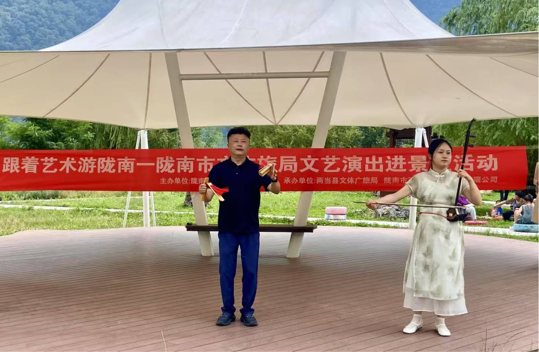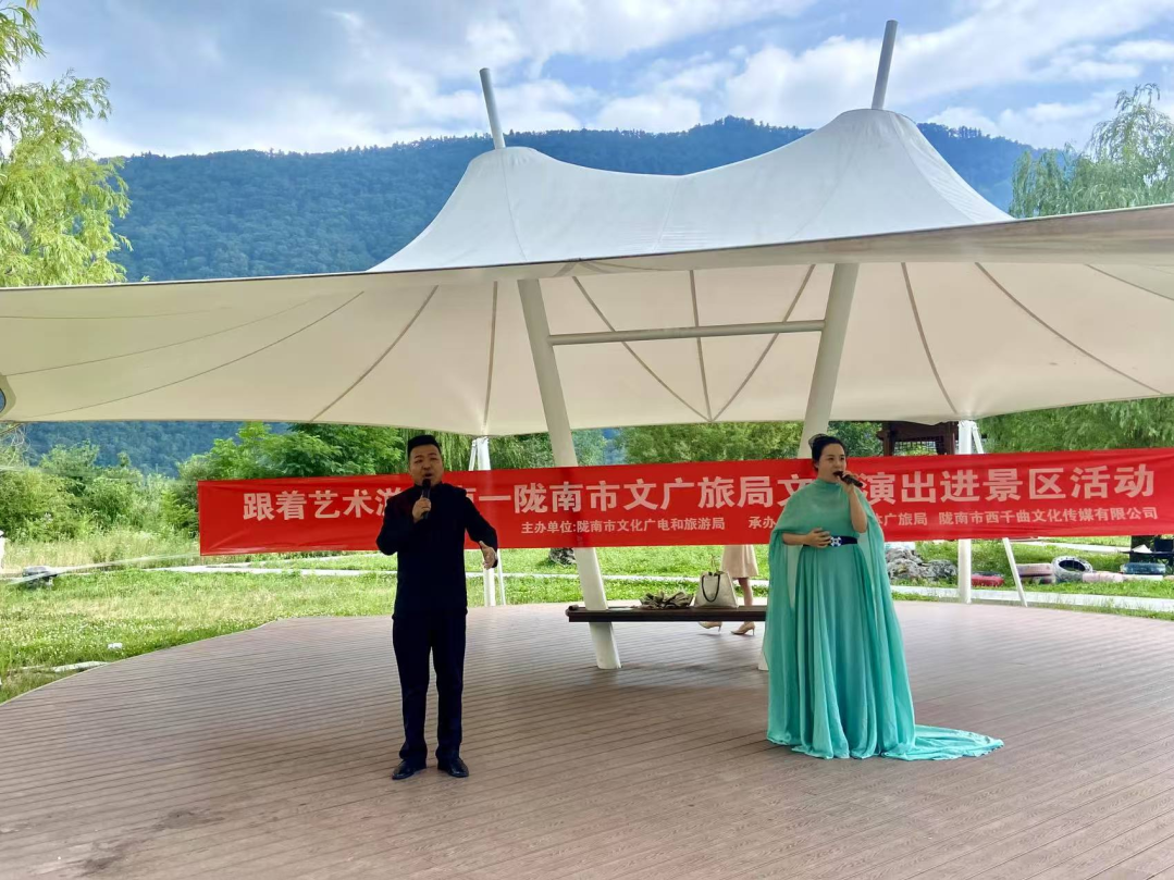 山风为律,翠谷为台。为赋能景区文化活力,进一步丰富游客文化体验,8月3日,市文广旅局组织演出团队走进两当县开展了“跟着艺术游陇南”演出进景区活动。在云屏三峡景区的青山翠谷间,艺术与自然交相辉映,为游客送上一场兼具视觉与听觉的双重盛宴。