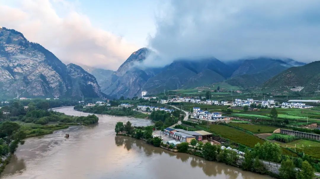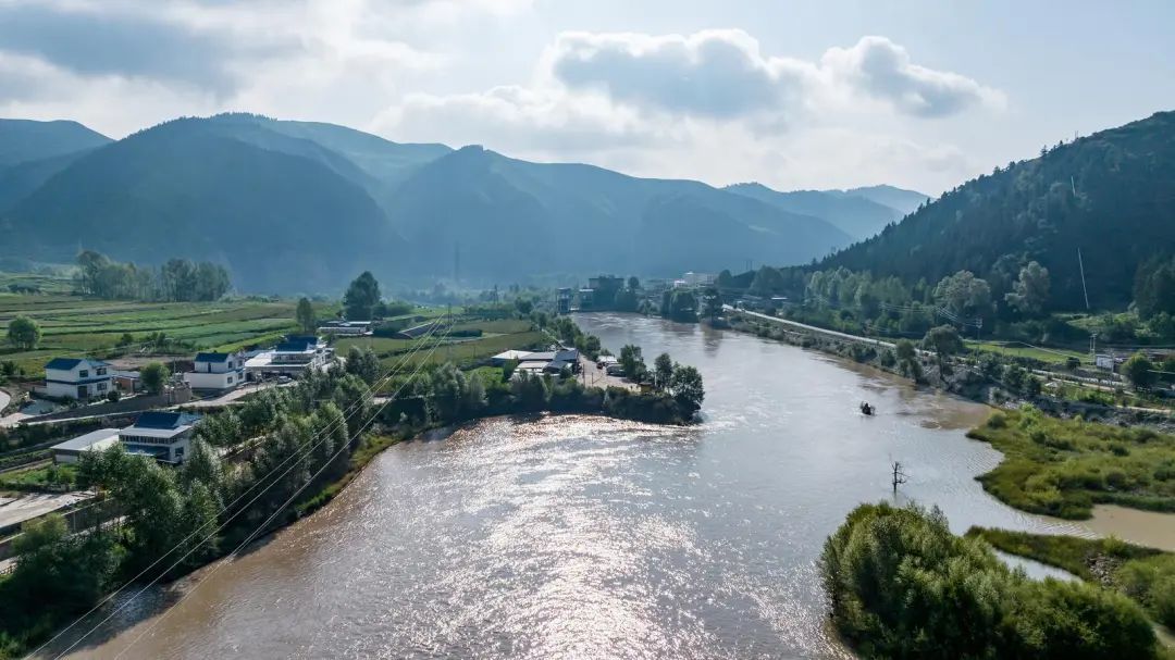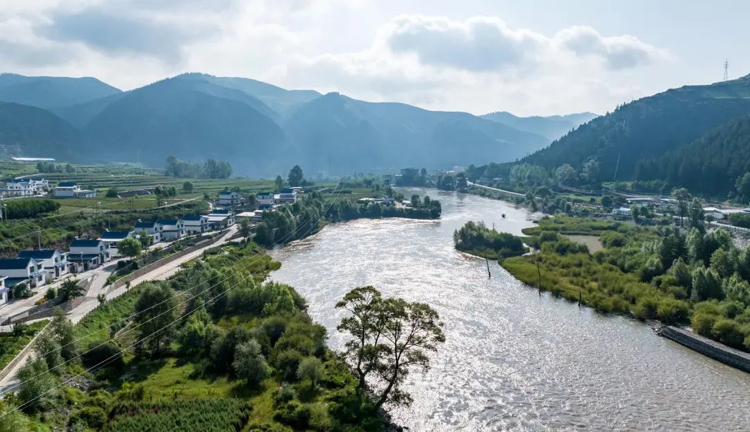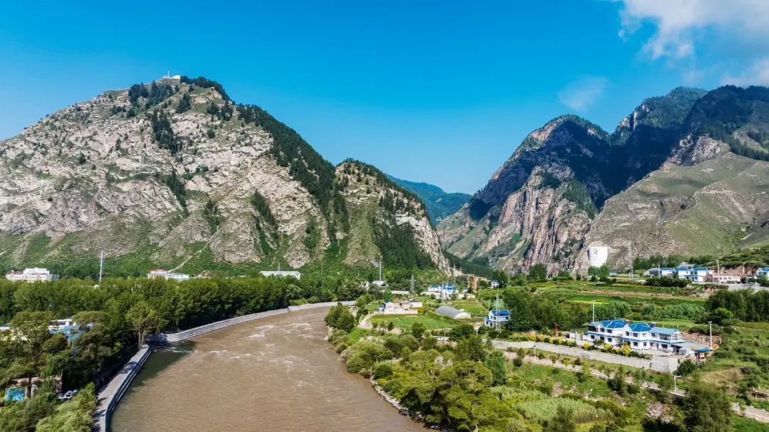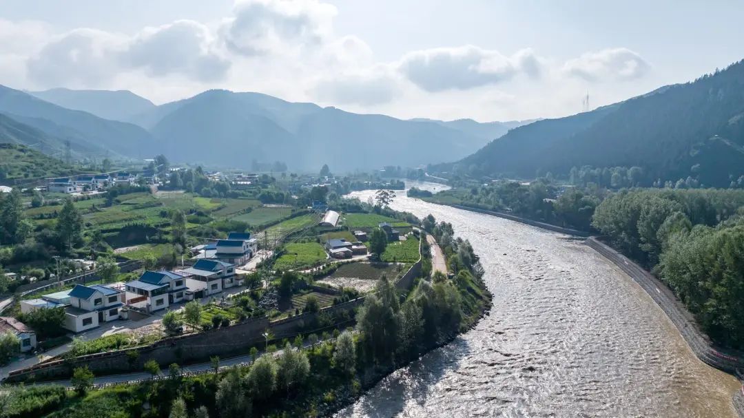 夏日的天祝县天堂镇,蜿蜒的大通河穿行于群峰环抱的村落间,碧波流淌,与田园风光相映成趣,构成一幅灵动的生态画卷。