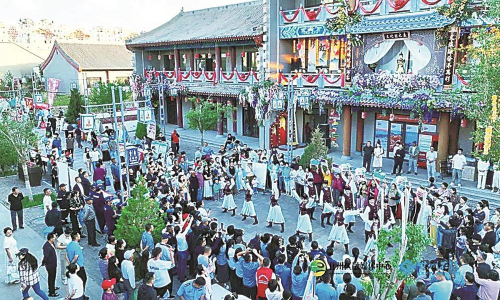 沿着青石板路漫步,仿古商铺的幌子在晚风里摇曳。张掖特色搓鱼面的爽滑、牛肉小饭的鲜香、灰豆子的软糯,数十种美食构成味觉地图。卤汁深卤串老板任子健正麻利地给炸串刷酱料:“这配方是我试了20多次才定下来的,用30余种香料熬的卤汁,光熬制就得6小时。”他的摊位前,来自天水的游客胡胜玲正举着炸串拍照:“没想到张掖的小吃这么合胃口,明天要带两罐卤汁回去。”