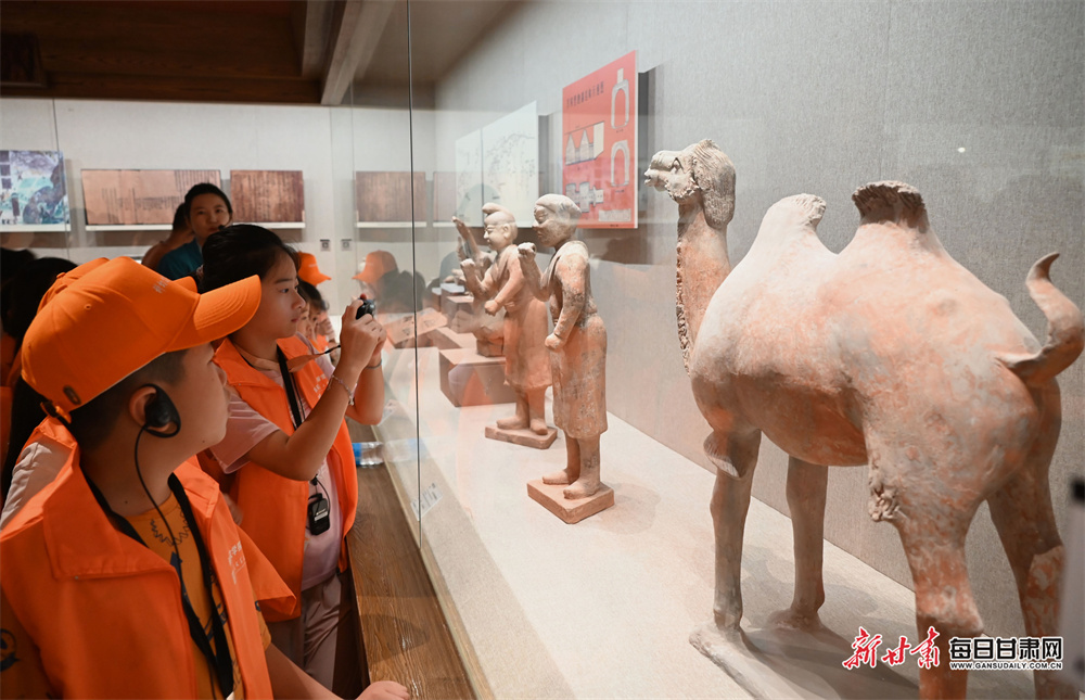 8月3日,敦煌市博物馆内,孩子们好奇地驻足于文物展柜前听讲解、看展品,在斑驳的壁画复制品前探寻丝路故事,在古朴的器物旁想象敦煌过往。从博物馆到书局,墨香与历史感交织,让这个暑假因文化的浸润而更显充实与美好。
