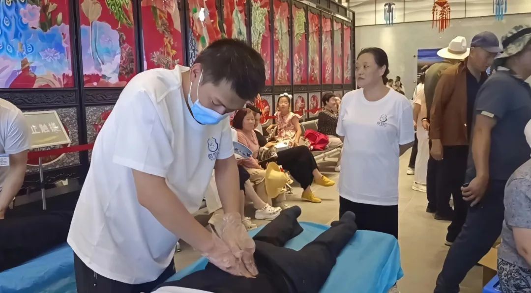 非遗中医理疗区前,里三层外三层围满了游客,吕氏秘方第三代传人吕秀芳正全神贯注地施展着古方技法,她的指尖在游客的颈肩灵活游走,每一次按压、推拿,都仿佛在唤醒沉睡千年的中医智慧。一位体验完理疗的游客不禁赞叹:“以前就知道中医好,这次亲身体验,才明白这其中的门道这么深奥,真是大开眼界!”
