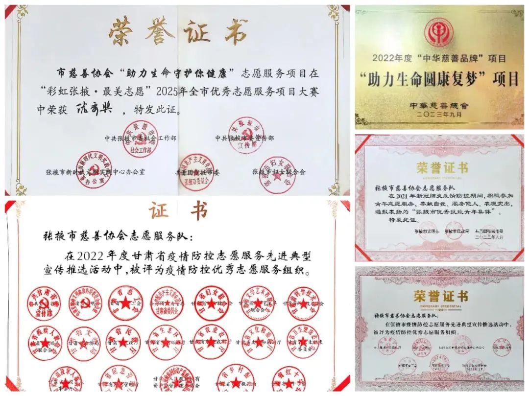 一串串坚实足迹,收获了累累硕果。2022年2月张掖市慈善协会志愿服务队被张掖市文明办通报表扬为“张掖市优秀抗疫青年集体”,多名志愿者被通报表扬为“张掖市优秀抗疫青年个人”;2022年12月被甘肃省委宣传部等19个部门评为疫情防控优秀志愿服务组织;2023年2月被张掖市委宣传部等7部门评为“疫情防控优秀志愿服务组织”;2023年12月,被省委宣传部推荐为全国学雷锋活动示范点;2025年3月,“助力生命守护你健康”志愿服务项目荣获2025年全市优秀志愿服务项目大赛优秀奖。截至目前,服务队年服务时长近8000小时,开展450余场慈善活动,筹措5000多万元款物,惠及42万困难群众。未来,张掖市慈善协会志愿服务队将继续秉持初心,播撒爱心,为建设更美好的张掖添砖加瓦,让慈善之光普照大地。