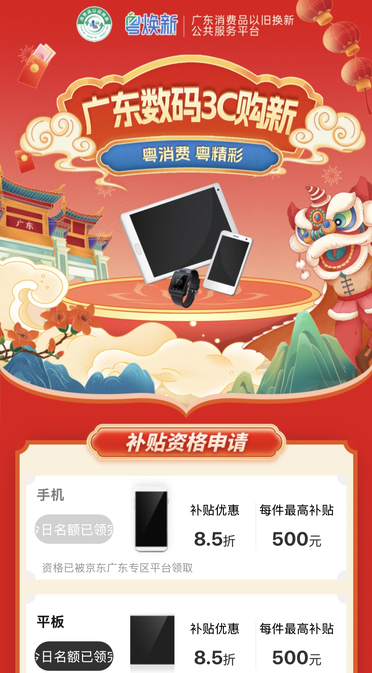 李先生告诉记者,几天前,他在网上买了一部华为手机,随后客服工作人员电话告知,他可领取国补享受优惠。可是,当他通过“甘快办”申领3C数码购新补贴时,发现国补资格已被广东省地区领取。在记者的帮助下,李先生通过云闪付查询发现,自己的国补资格是在京东APP上领取,随后通过京东官方客服提供的链接,在“广东消费者以旧换新服务平台”中的“粤焕新”内进行解绑,随后返回“甘快办”,则显示有领取国补的资格。