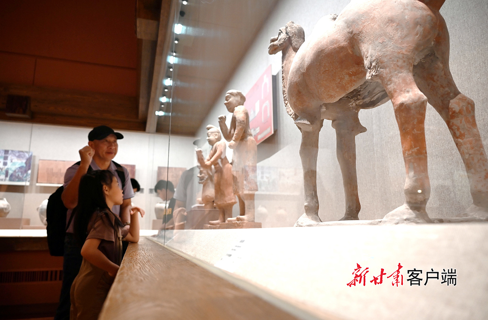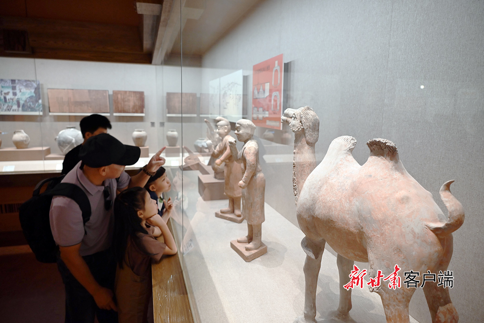 8月10日,家长带着孩子在敦煌市博物馆、鸣沙山月牙泉景区参观游览。进入暑期以来,小朋友们走进古城敦煌,领略大漠风光,体验丝路风情,感受敦煌文化,充实暑期生活。