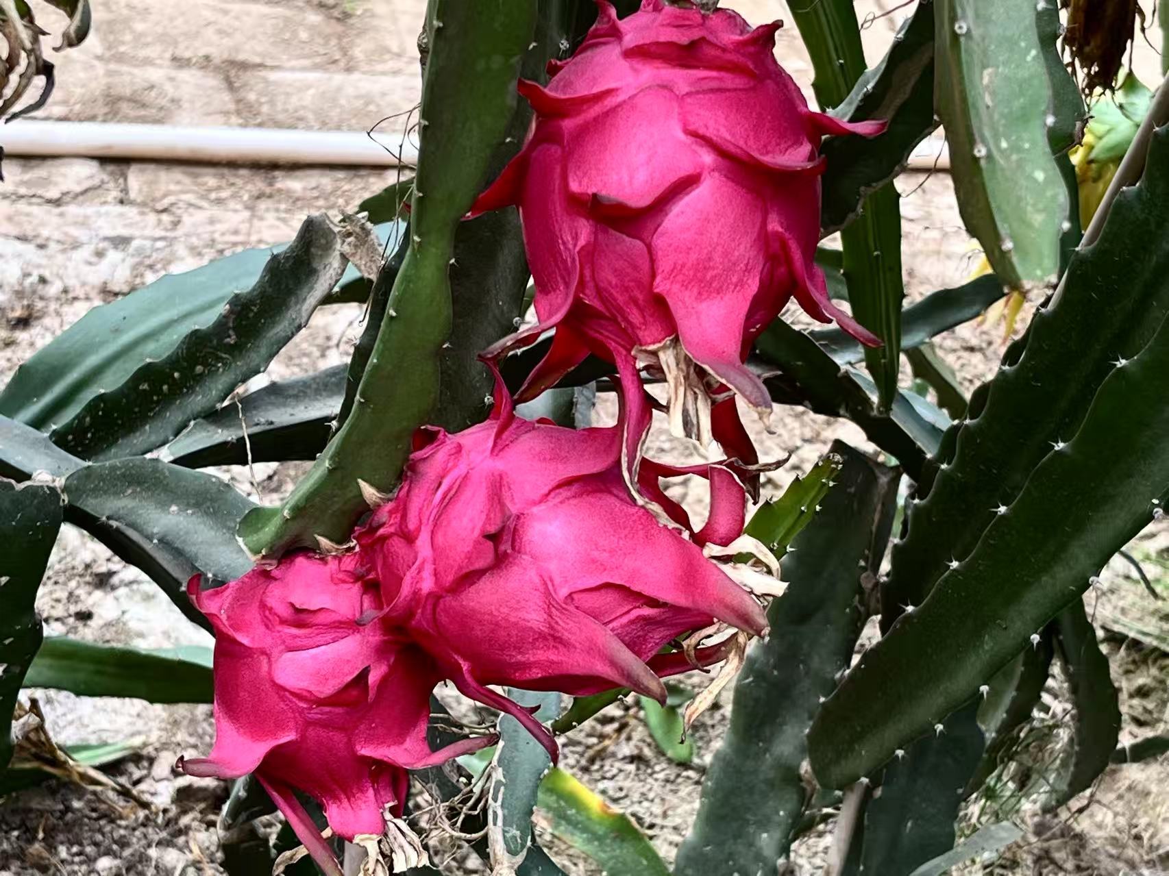 于堂娃告诉记者,他种植火龙果已有多年,从最初的“试试看”到如今的“放心种”,产量一年比一年高,从7月挂果一直可以持续卖到10月,一棚下来有一万多元的收入。