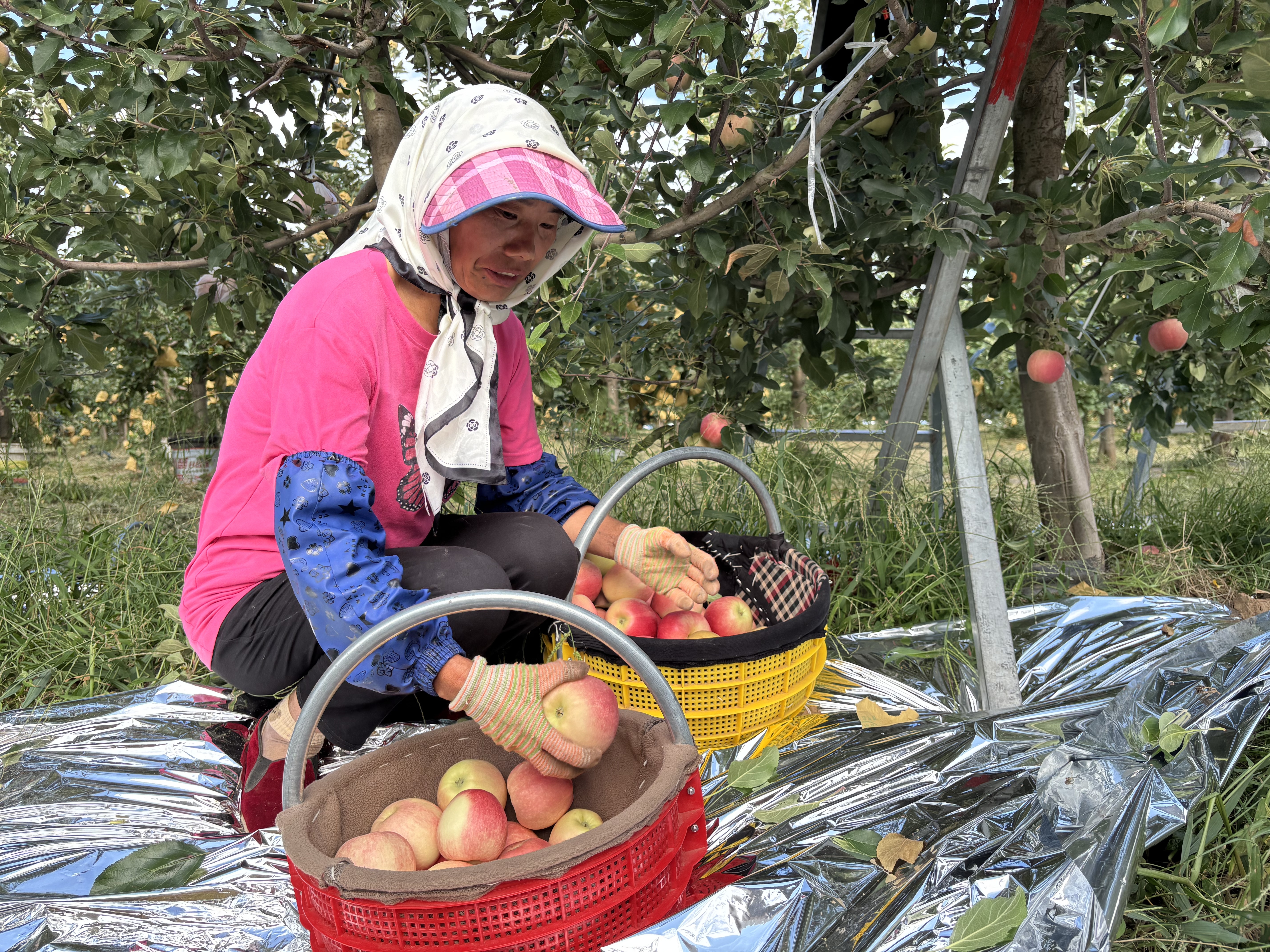 苹果丰收,不仅让果农腰包鼓,也为周边村民带来“家门口就业”的机会。从果树修剪、疏花定果,到套袋卸袋、采摘装运,李玉琴的果园全年需用工50余人。
