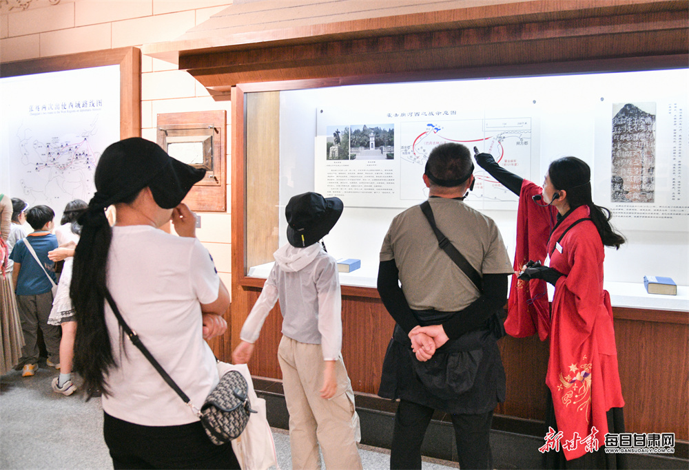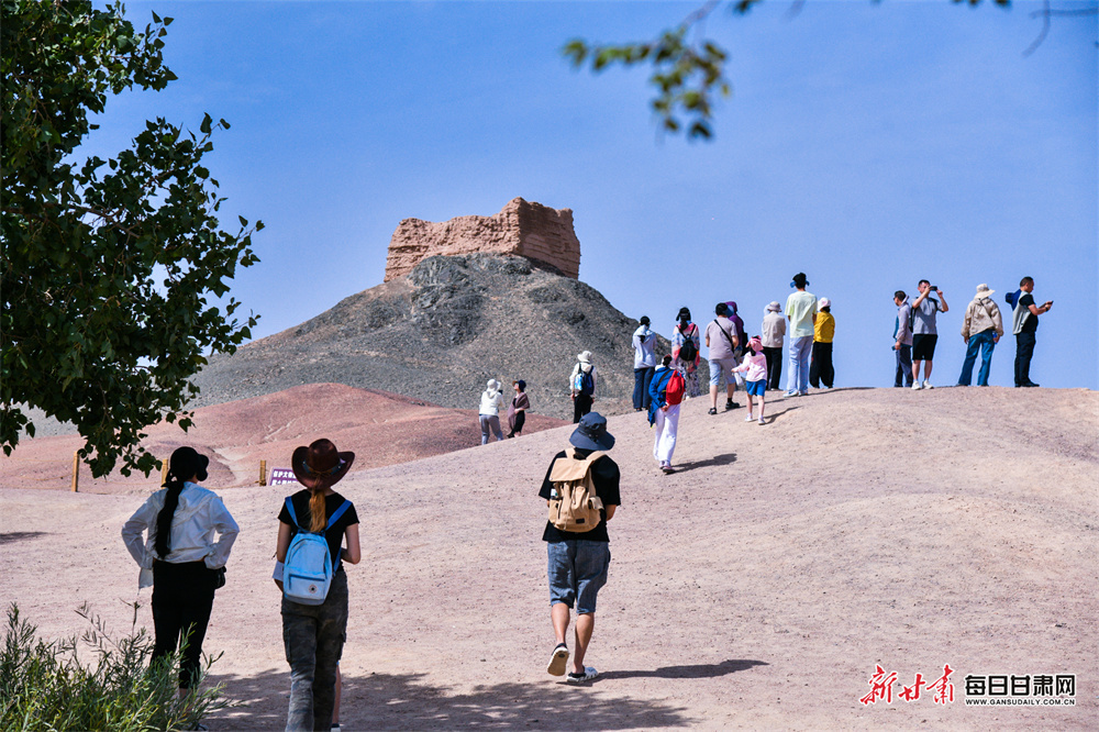 今年暑期,阳关景区的游客中,亲子家庭占比显著提升,家长们带着孩子踏访古迹,在斑驳的关城遗迹前讲述“劝君更尽一杯酒”的悠远故事。另一边,三五成群的年轻人活力满满,有的在城垣下高声吟诵边塞诗,让“大漠孤烟直”的豪情穿越时空;有的换上飘逸汉服,以烽燧、沙丘为背景定格青春影像,用年轻的方式与历史对话,让沉寂的遗址焕发新的生机,也让丝路文化在欢声笑语中悄然传承。