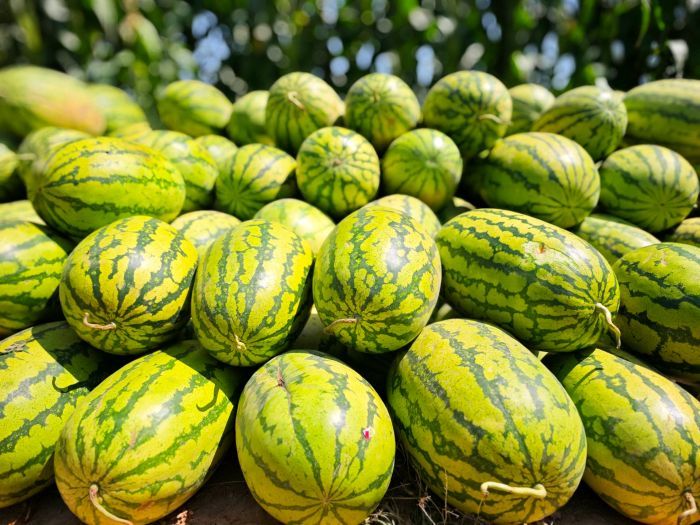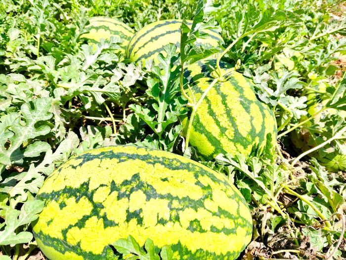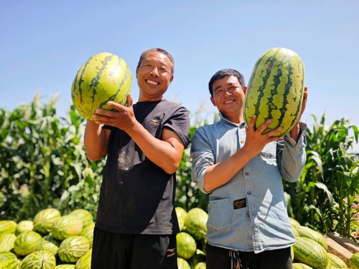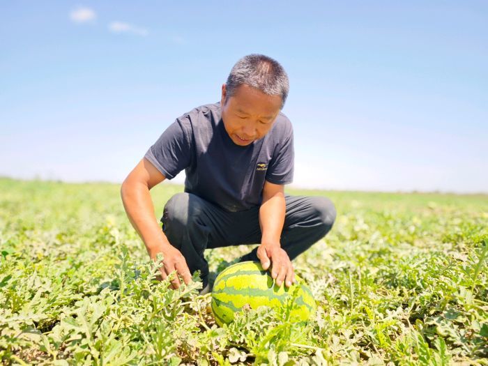 一排排绿油油的瓜藤下,圆润饱满的西瓜长势喜人。种植户张玉范正忙着采摘成熟的西瓜,脸上洋溢着喜悦:“今年的西瓜长得好,又大又甜。这几天正在陆续采收,我种了400亩呢,应该会有个不错的收成。”