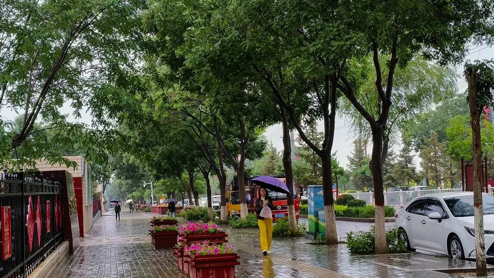 街道上,五颜六色的花伞成了流动的景致,撑开的伞面似绽放在雨幕中的花朵,随着行人脚步缓缓移动,为雨日添了几分鲜活。细雨斜斜密密织着,将公园里的草木刷洗得苍翠欲滴,叶片上悬着的雨珠晶莹剔透,倒映着朦胧天光。