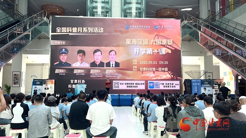 中国甘肃网9月3日讯(西北角·中国甘肃网记者 张慧雅)近日,甘肃科技馆举行科普讲座,活动特邀空军大校焦国力、清华大学教授董景新、兰州万里航空机电有限责任公司副总工程师吴朝选、中国航天科技集团五院510所科技委秘书长雷占许四位科普专家,为120余名学生带来“开学第一课”,引领同学们探秘国之重器。线上直播吸引62.3万余人次同步观看。