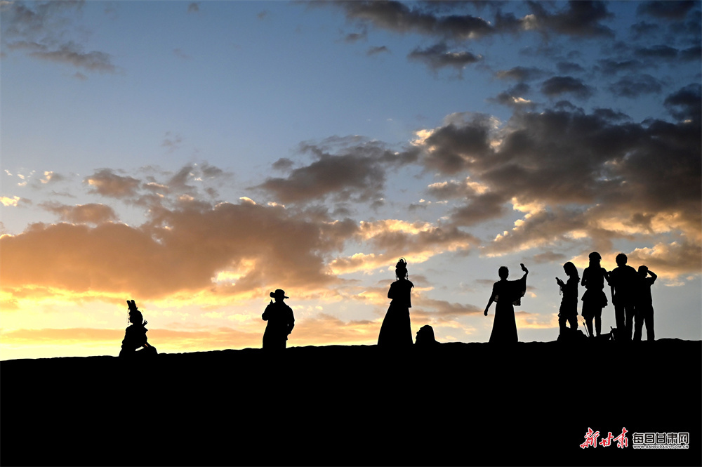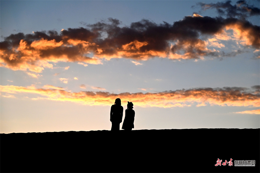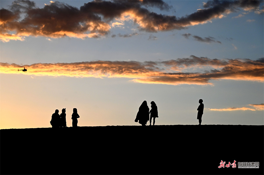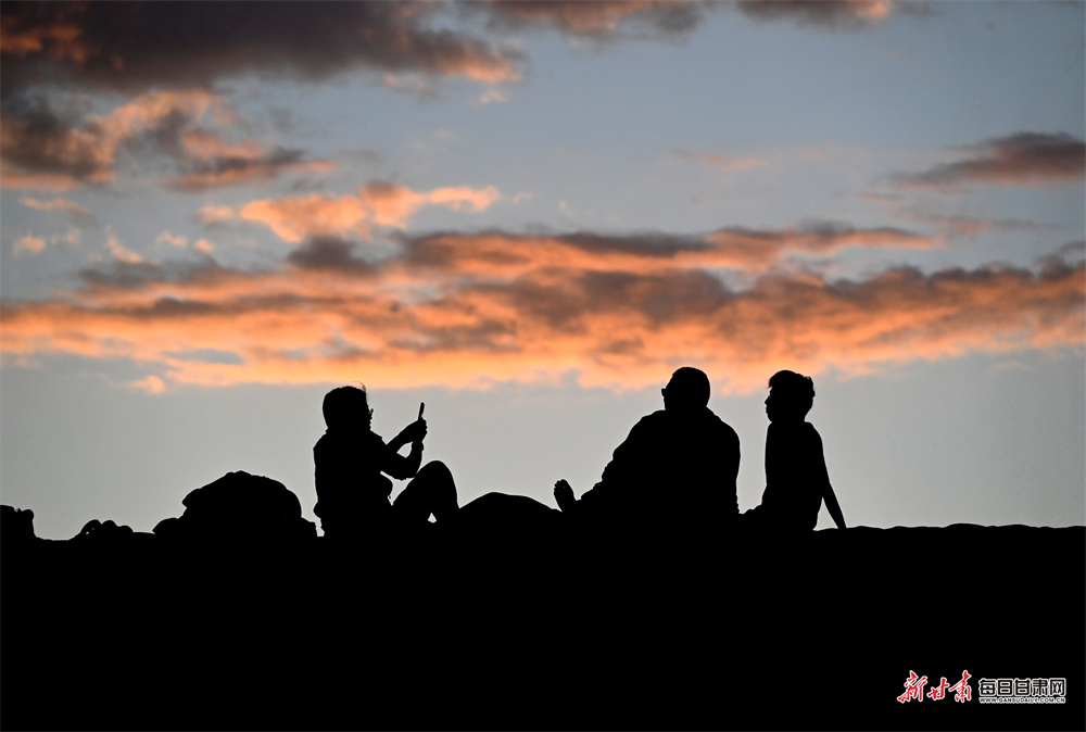 秋日夜晚,敦煌市鸣沙山月牙泉景区迎来绝美晚霞。绚烂霞光铺满大漠天空,与沙丘、泉景相映成趣,景致如画,格外迷人,尽显西北大漠的独特浪漫。