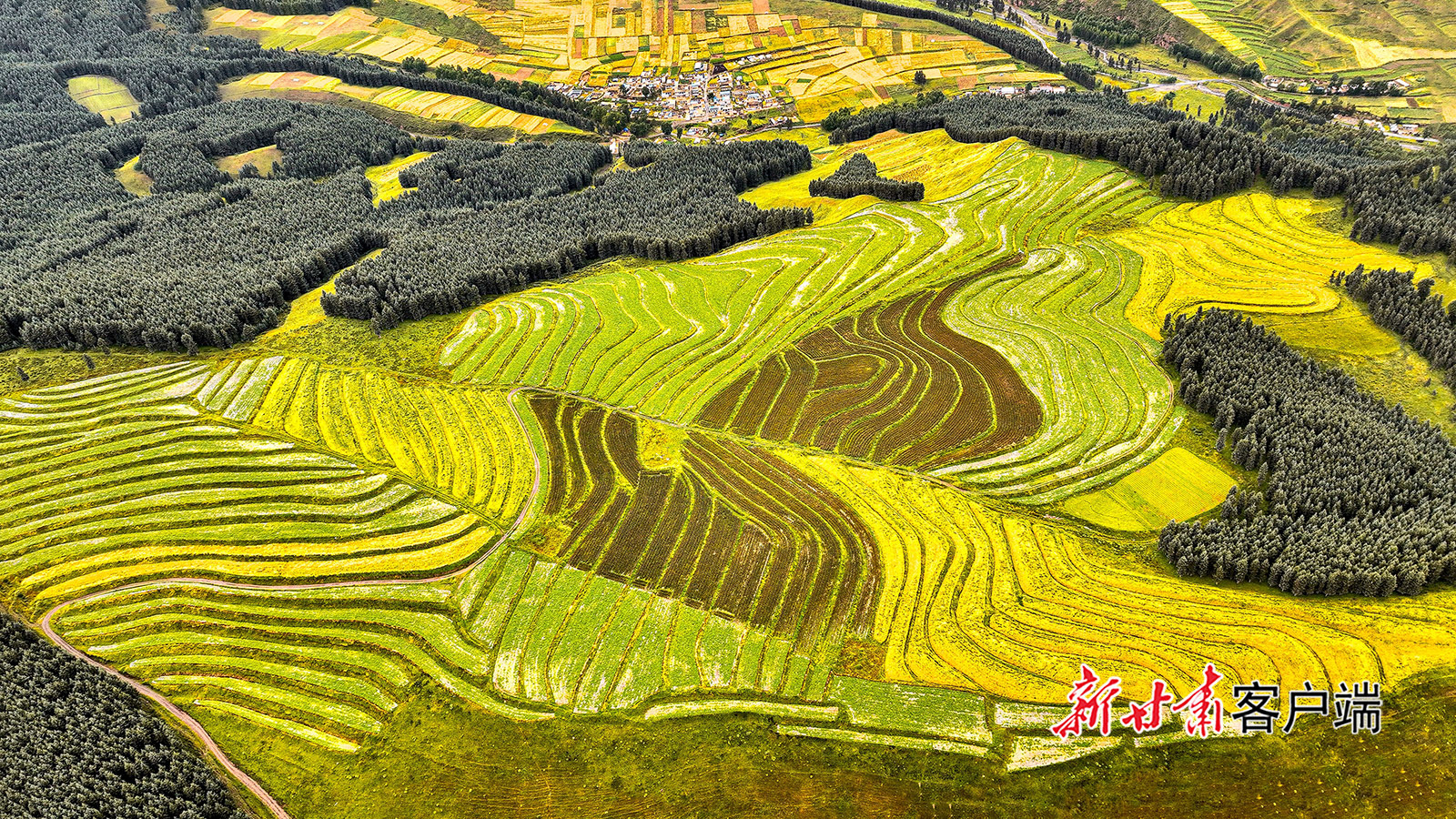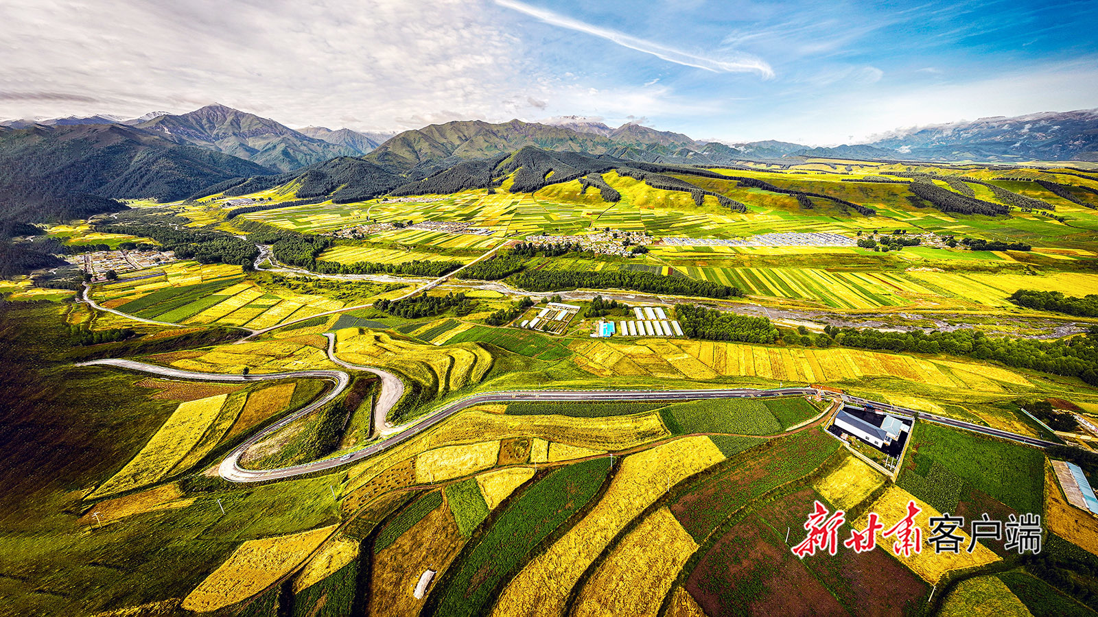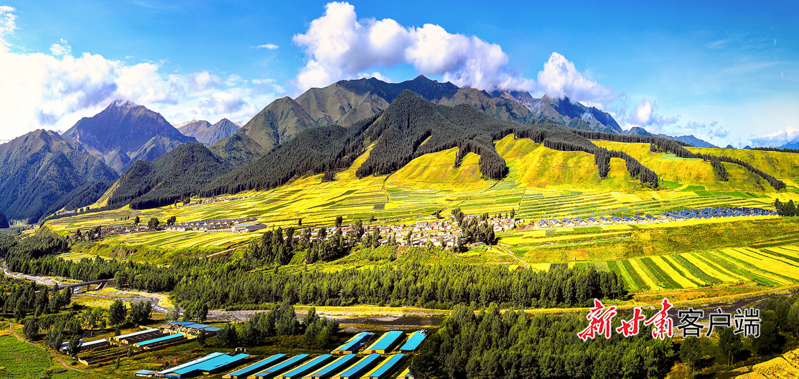 祁连山脚下的天祝县哈溪镇,田野褪去了夏日的葱郁,换上了秋装。大地翻涌着金色的波浪,像是铺上了华贵的绒毯,色彩斑斓、令人陶醉。
