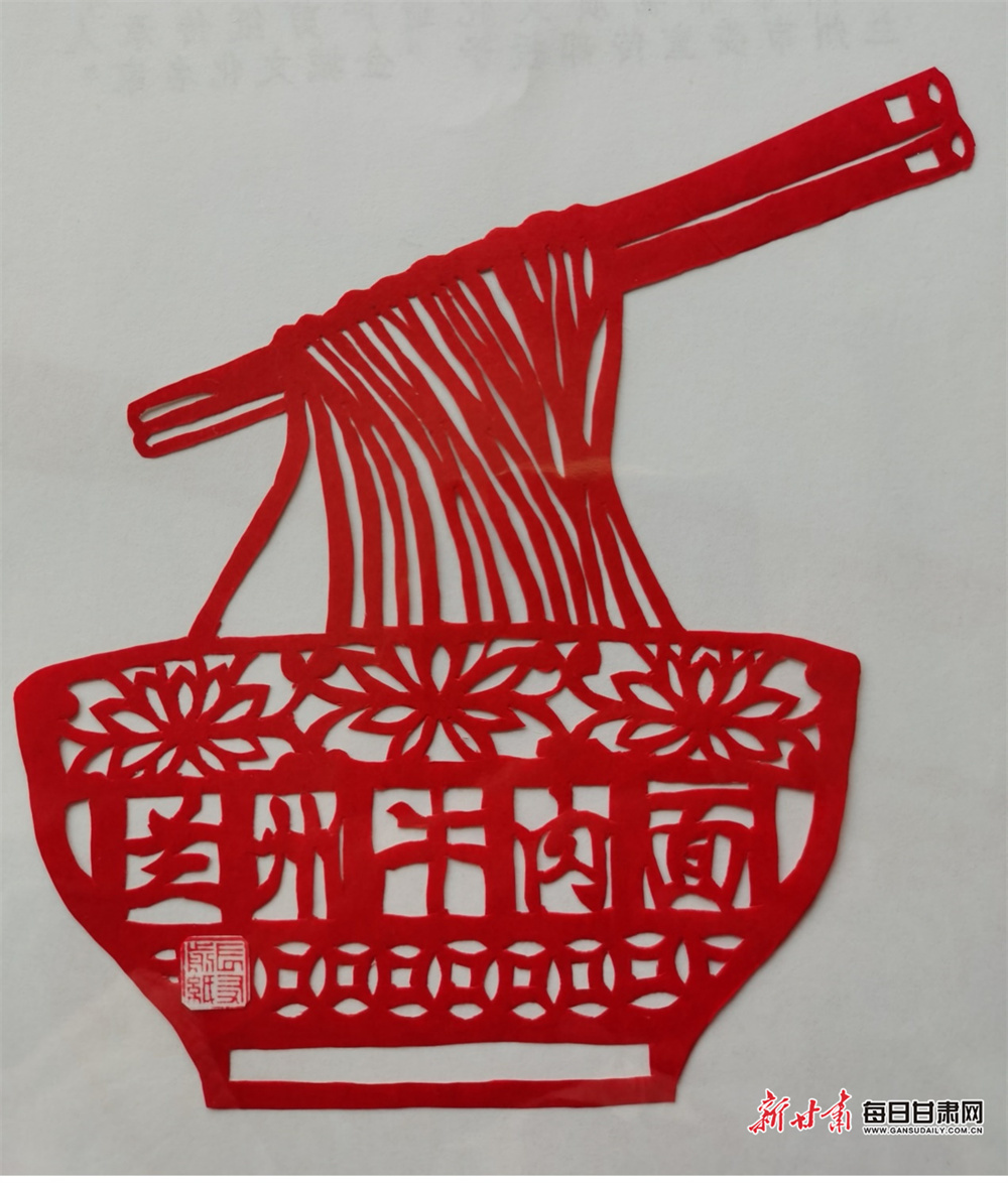 不仅是蝴蝶,他的剪纸里满是文化与地域的印记:《敦煌舞伎》《甘肃彩陶》展现丝路风情,《兰州古八景》《黄河母亲》《兰州牛肉面》勾勒金城风貌,《金陵十二钗》还原古典神韵。这些作品多次在全国剪纸展中斩获金、银奖,2010年,《兰州古八景》还被制成3米高、2米宽的钢板剪纸,永久陈列在兰州金城观古建街,成了城市文化符号。