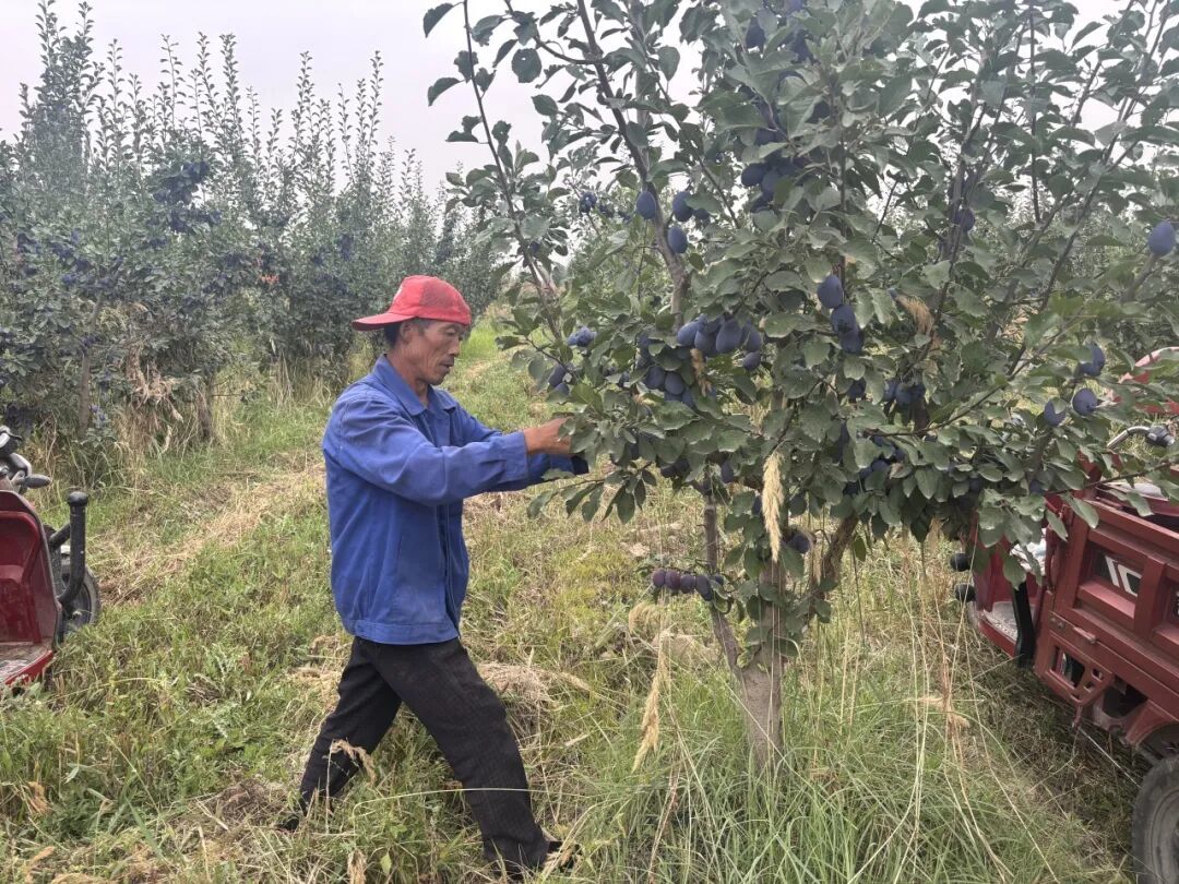 “今年雨水足、光照好,西梅个头比去年大一圈,甜度也更高。”金佛寺镇观山口村西梅种植户茹作发一边将采摘好的西梅放进筐里,一边笑着说道。