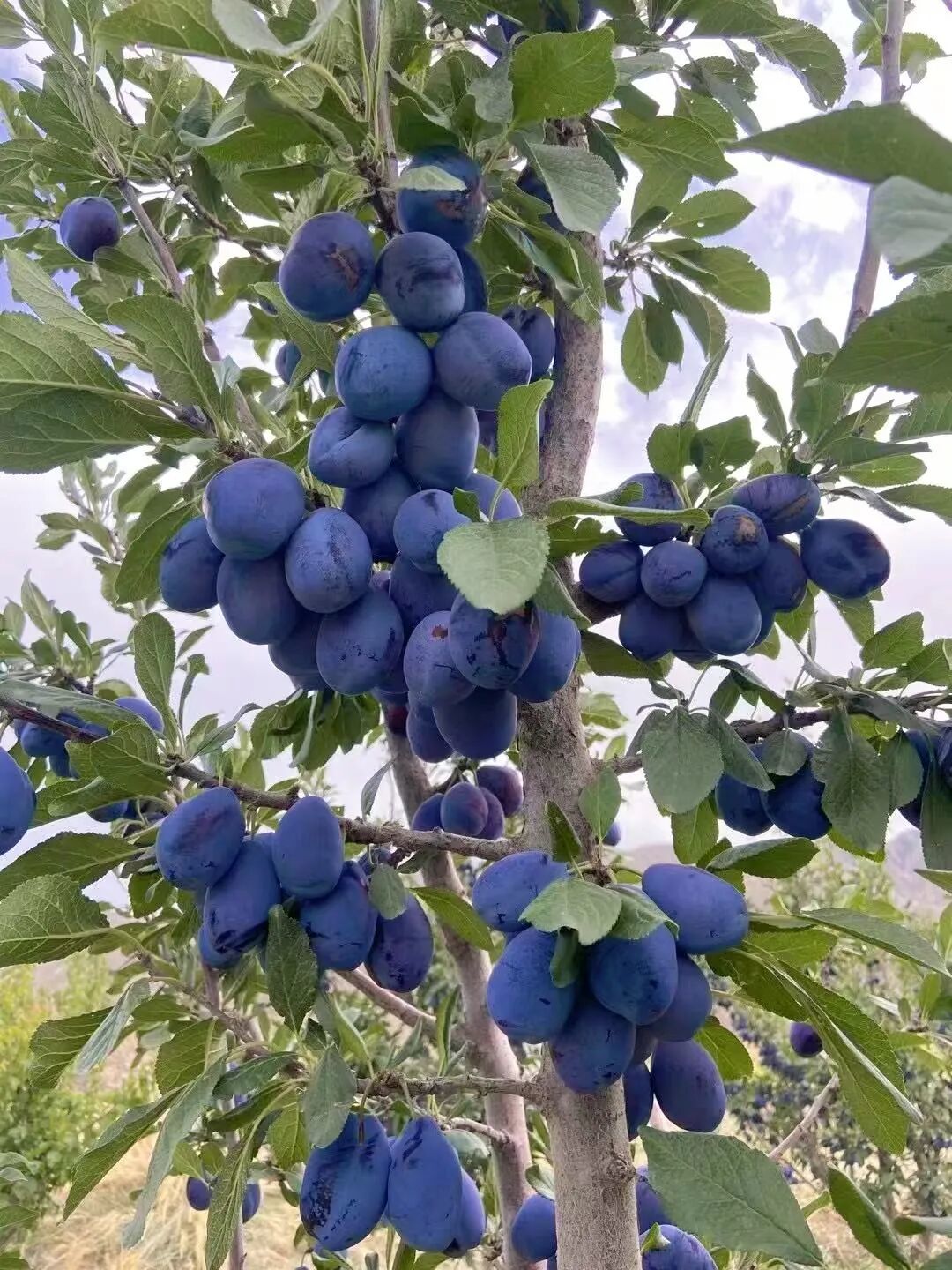 走进金佛寺镇观山口村的西梅种植基地,连片的西梅树郁郁葱葱,枝头挂满紫红色西梅,饱满的果实裹着一层薄薄的白霜,在阳光下泛着诱人光泽。微风拂过,浓郁的果香扑面而来,果农茹作发正背着竹筐穿梭在果树间,小心翼翼地采摘着成熟的西梅。