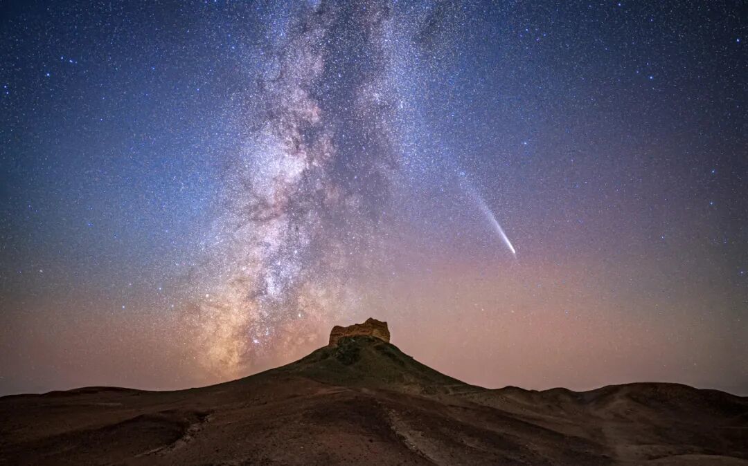 银河倾泻时,阳关化作浮在星海中的方舟。这里没有霓虹的僭越,没有雾霾的遮掩,星子如同莫高窟藻井上剥落的金箔,密密匝匝地缀满孔雀蓝的天穹。坐在墩墩山的山丘上,看流星划过阳关大道延伸的方向,恍惚望见霍去病的铁骑溅起星火,听见岑参的诗句在星空间碰撞出金石之声。此刻的星空,是古人挥毫的银河帖,是今人仰望的永恒经卷。