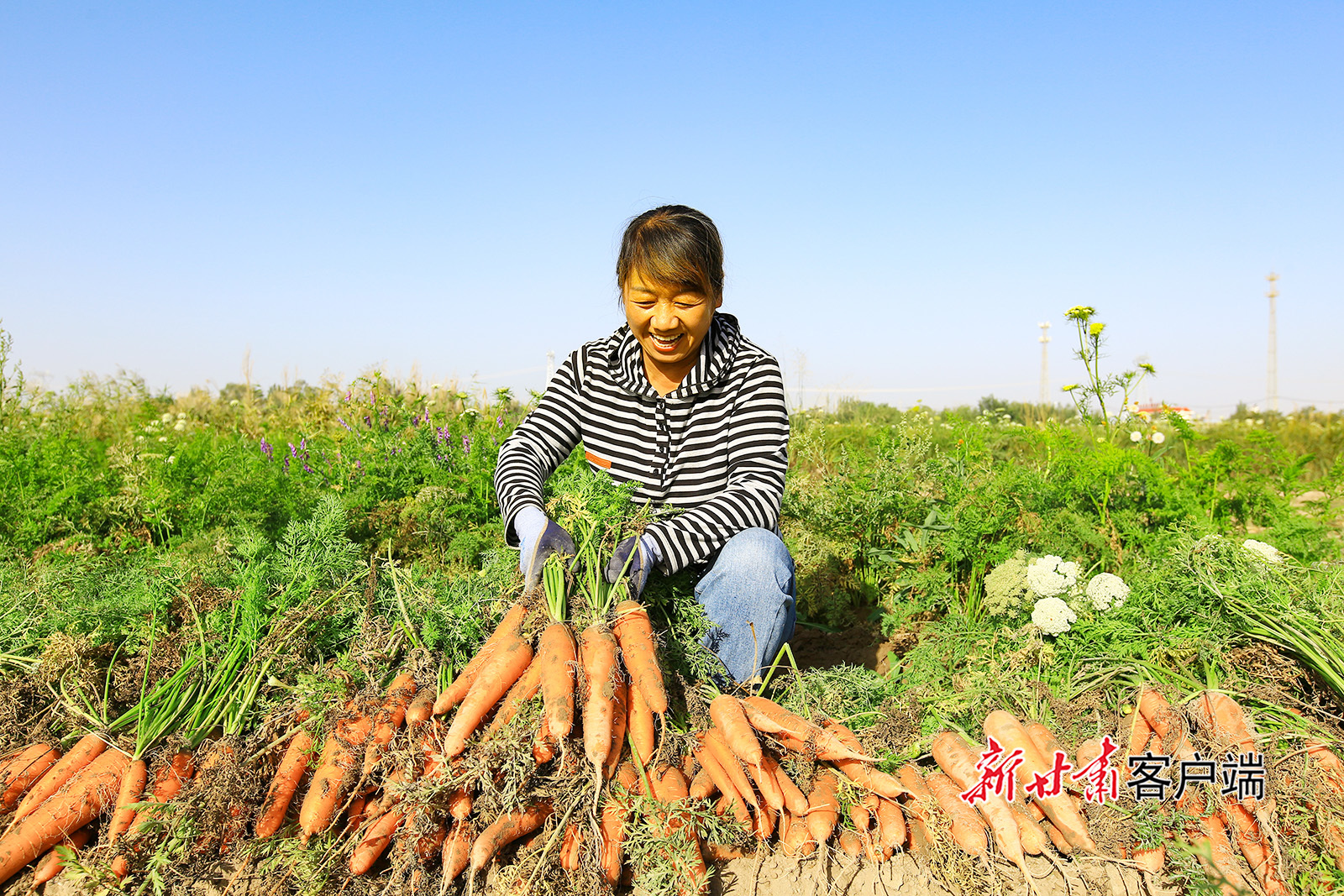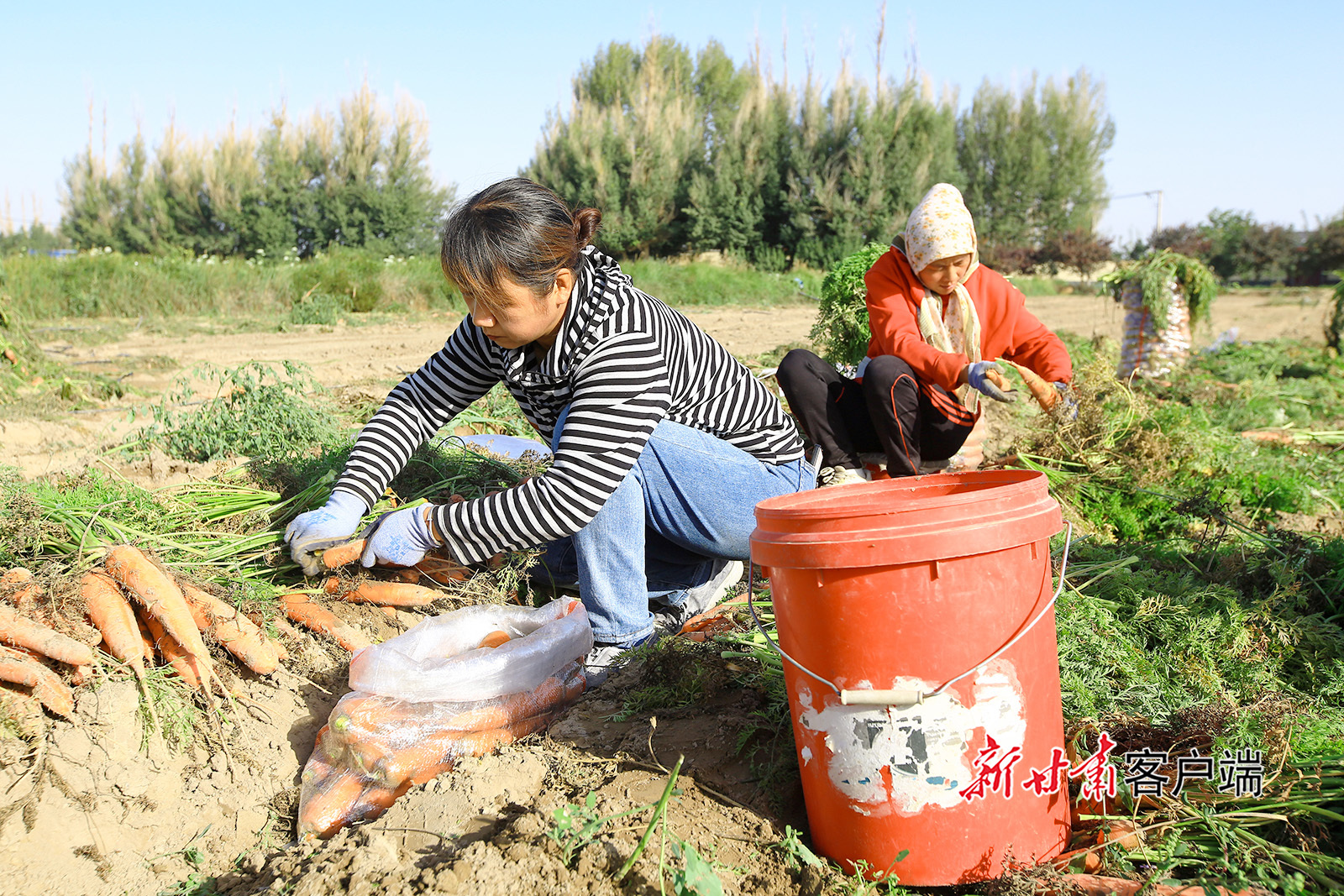 9月9日,嘉峪关市新城镇泥沟村的胡萝卜喜获丰收,农民正在采收胡萝卜供应市场。该村利用独特的水土资源和充足的光照资源,种植的胡萝卜具有色泽鲜艳、脆嫩多汁等特点,其产品远销各大城市,成为当地农民经济持续增收的支柱产业。