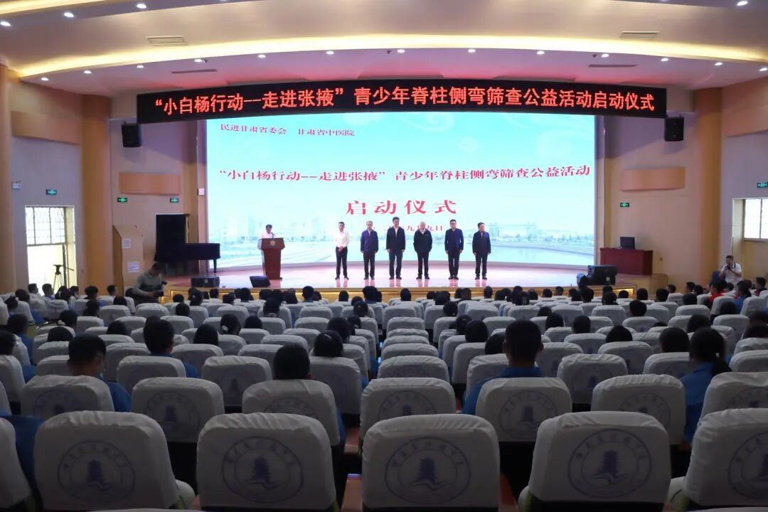 9月9日,“小白杨行动——走进张掖”青少年脊柱侧弯筛查公益活动在张掖中学启动。民进中央副主席张雨东,甘肃省政协副主席、民进省委会主委尚勋武,民进中央办公厅主任姚立迎,民进贵州省委会副主委、贵州省人民医院副院长朱建国,民进甘肃省委会医卫工作委员会主任、省中医院副院长赵军,张掖市委常委、统战部部长杨宪辉出席启动仪式,民进甘肃省委会专职副主委陈伟致辞,市政协副主席张文智主持。