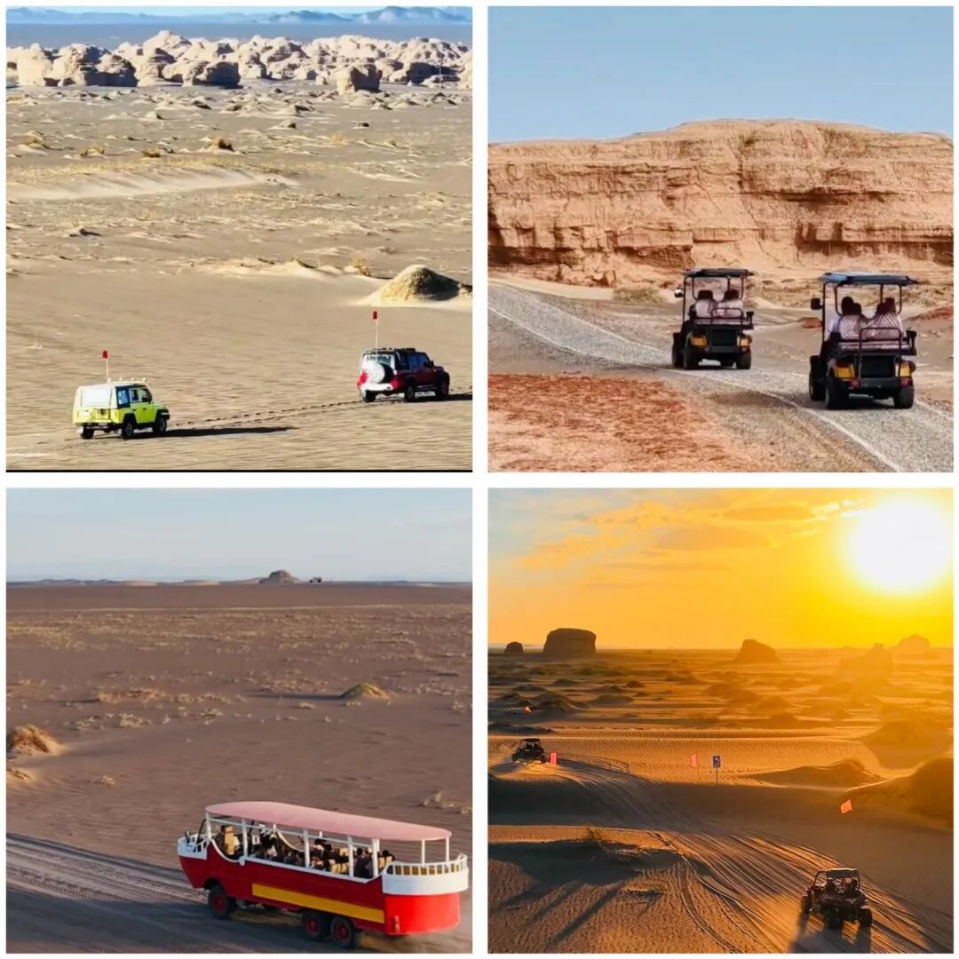 在敦煌雅丹,游玩方式丰富多样,满足不同游客的需求。乘坐景区观光车,您可以轻松欣赏园区的主要景点,且每个景点都会有10-30分钟的停留时间,让您有充足的时间拍照留念,感受大自然的魅力。如果想要更深入地探索雅丹地貌的奥秘,不妨选择越野车或观光电车,更深入景区,抵达小众观景点和观赏日落的绝佳至高点。而沙漠冲浪车则像“沙漠之舟”,让您在风蚀地貌间畅享风驰电掣的快感。若您追求速度与激情,还可以体验卡丁车。驾驶着卡丁车穿梭于雅丹之间,感受古老地貌与现代运动的碰撞,在戈壁上留下一段难忘的速度之旅。