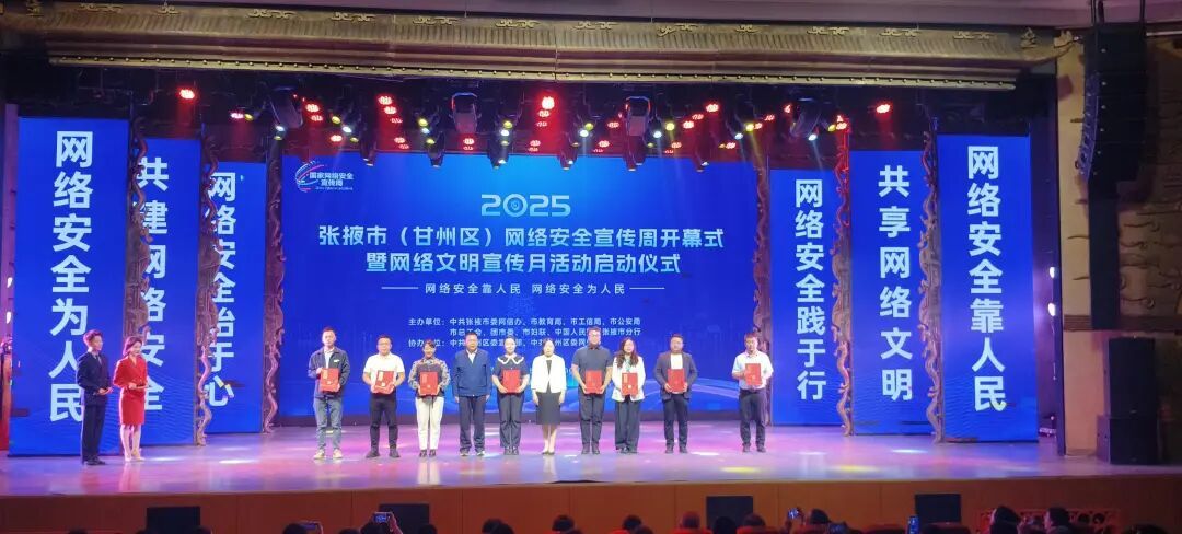 2025年国家网络安全宣传周系列宣传活动于9月15日至9月21日在全国范围内同步开展。9月15日,2025张掖市(甘州区)网络安全宣传周开幕式暨网络文明宣传月活动启动仪式在甘州区三馆演会中心举行,旨在通过丰富多彩、形式多样的宣传活动,深入学习贯彻习近平总书记关于网络强国的重要思想和中央、省委、市委对网信工作的部署要求,进一步增强全社会网络安全意识,营造健康文明网络环境,提升网络安全保障能力,为张掖市经济社会发展提供良好的网络生态环境和有力的网络安全保障。