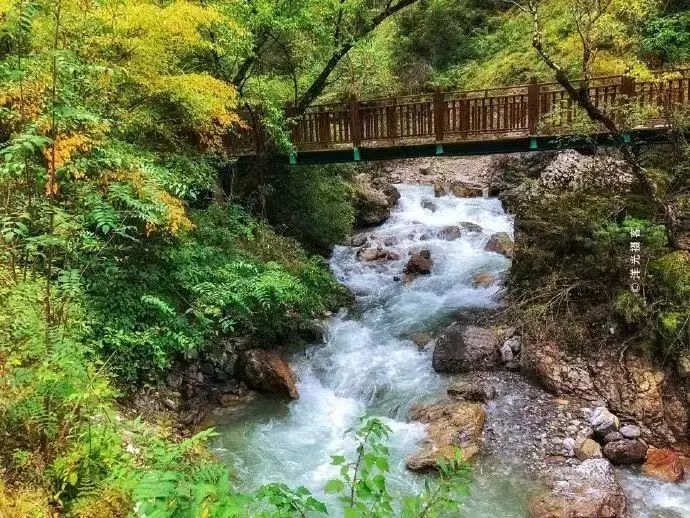 夏末的余温还未散尽,官鹅沟的秋已抢先递来请柬。最先应约的是溪水,褪去了盛夏的湍急,沉下心来把日子过成了诗。阳光穿透渐薄的枝叶,在水面绣出粼粼金纹,水底的卵石裹着青苔,像被时光打磨过的翡翠。俯身时,能看见自己的影子在水里轻轻晃,与游鱼撞个满怀,惊起一圈圈涟漪,把天空的蓝、云朵的白都揉碎在里头。