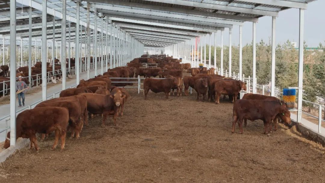 在优然牧业的现代化奶牛牧场里,“棚上发电、棚下养殖”的模式成了“香饽饽”——年发电量640多万度,既降低了养殖成本,上半年还产出1.6万吨优质原奶,产值超5000万元;昊康牧业的万头肉牛育肥基地,自己种饲草、建加工车间,实现“种养加”循环,目前存栏8000多头,出栏4532头,产值7600多万元。