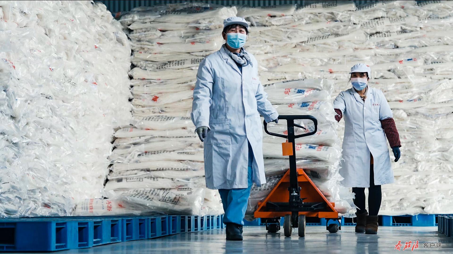 金色链条上,龙头企业一头连着广袤的田野,另一头通向瞬息万变的大市场。农产品深加工,让农民不再为薯块卖给谁而发愁了。庄浪宏达淀粉和鑫喜淀粉两大龙头企业,主要生产马铃薯淀粉、粉条、薯蛋白,马铃薯纤维、薯片等产品,年收购加工原料35万吨以上。“当时在办厂的过程中,自己就想了很长时间,一个是要依托地方资源,咱们马铃薯品种这么好,就是销售有问题。最后,他就决定办了这个淀粉厂。可以说,咱们县上的庄薯3号这个品种,在全国卖的价格是最高的。一个是粘度大,淀粉颗粒大,生产出来的淀粉品质好,所以厂子生产出来的淀粉深受旺旺、广东的友谊,还有双汇、恰恰这些知名企业都爱好这个产品,所以厂里淀粉没有库存积压。”庄浪县宏达淀粉责任有限责任公司总经理朱建勋说。