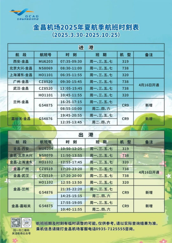 金昌机场位于市区以西约15公里处,目前已开通西安、北京、上海、成都、广州、武汉、兰州、嘉峪关至金昌的航线,有需要的跑友建议您提前通过航空公司官网或第三方票务平台查询航班信息,并预订机票。