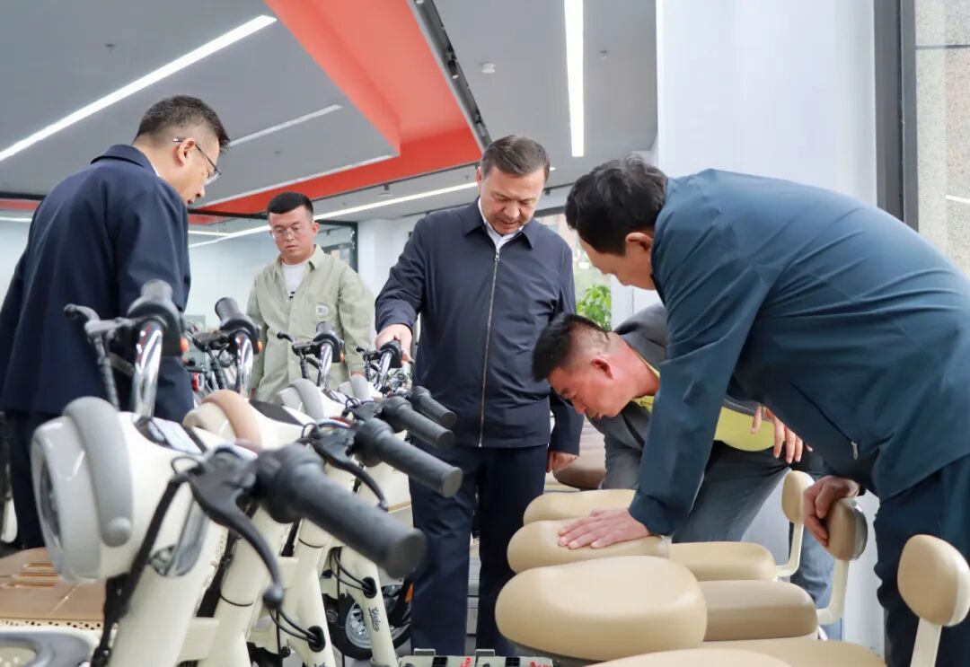 会前,叶尔波力·孜汗一行到雅迪电动车西关海旗舰店、饿了么平台第三方配送企业,实地了解电动自行车销售、管理等情况。