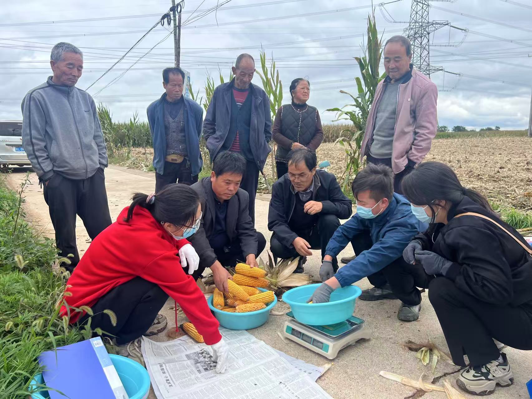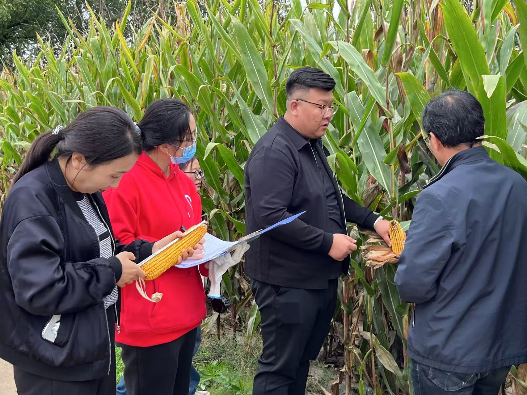 9月19日,西屯镇赛粮分赛现场,评分组专家手持测产工具,穿梭在玉米行间,细致清点单位面积玉米株数,剥开饱满果穗查看颗粒品质,用仪器精准测量籽粒含水量,每一项指标都严格记录、反复核对。参赛农户围在一旁,眼神里满是期待与自豪。