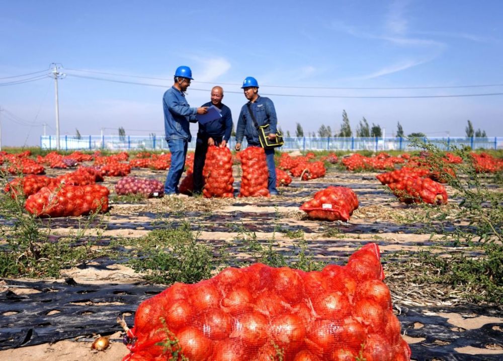 金灿灿的玉米籽粒饱满、红艳艳的西红柿挂满枝头、紫红的洋葱整齐码垛……最近,走进景泰县红水镇高标准农田种植基地,当阳光漫过田野,处处都包裹着丰收的颜色。