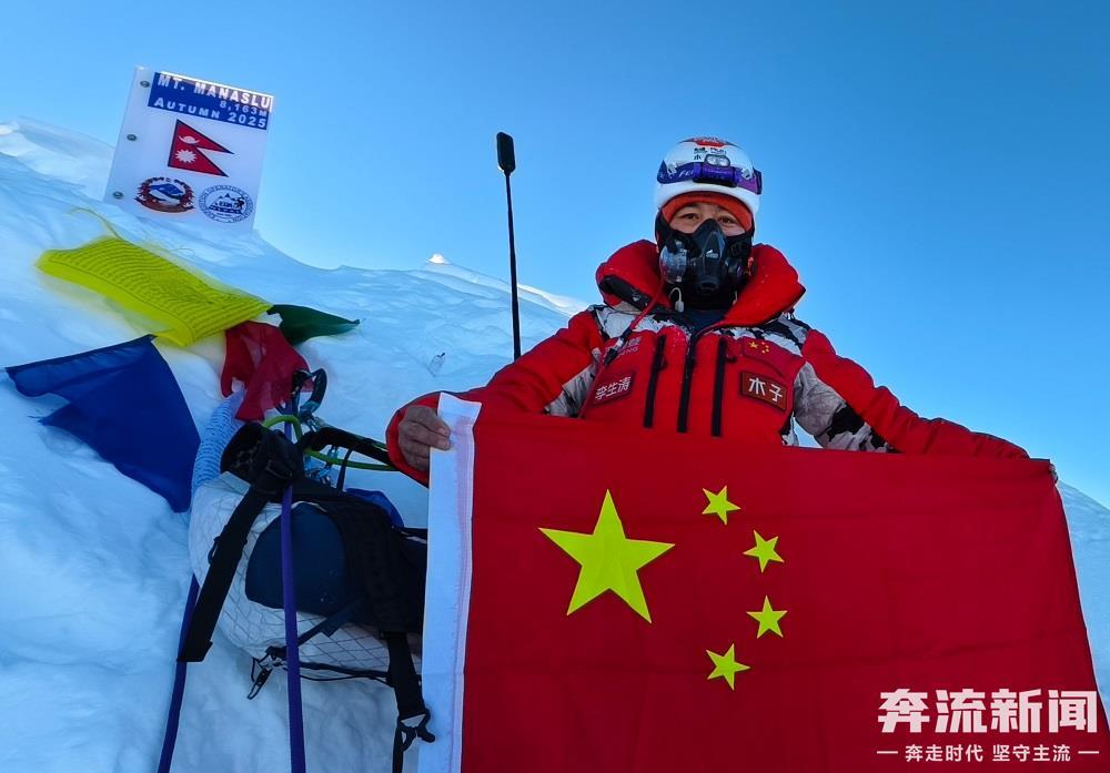奔流新闻讯(首席记者 张鹏翔)尼泊尔时间9月22日清晨5时40分,甘肃青年李生涛(木子)和马啸成功登顶世界第八高峰——马纳斯鲁峰(海拔8163米),在喜马拉雅山脉之巅再次刻下中国力量的印记。