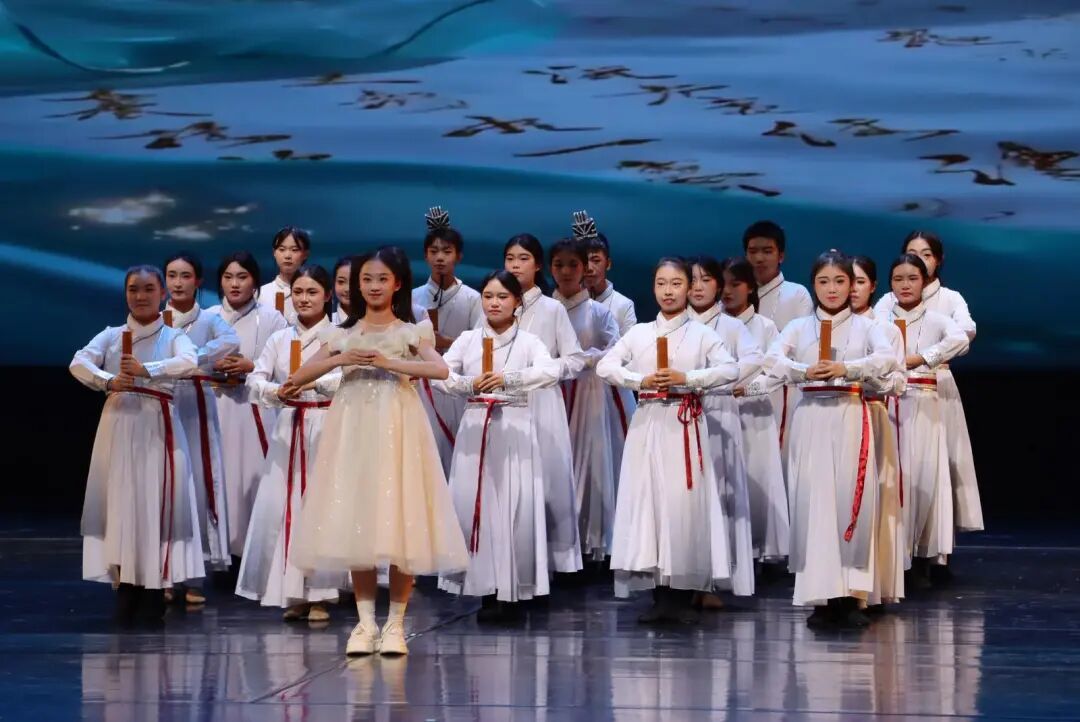 夜色渐深,随着诗会的深入,更多精彩节目陆续上演。大型投影、灯光特效构建沉浸式演绎空间,既有诗歌与舞台剧的同台对话,也有古往与今来的隔空朗诵,诗词言志,歌舞沁心。