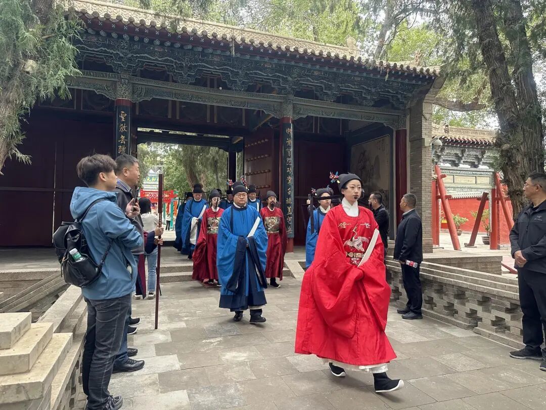 随后,大家走进武威文庙。作为西北地区建筑规模最大、保存最完整的孔庙之一,文庙内古柏参天,碑刻林立,尤其是特色“状元巡游”活动,让考察团成员眼前一亮。上海铁路国际旅游(集团)有限公司副总经理杨春潮是第一次来甘肃,他感慨道:“这边的历史文化太厚重了!‘状元巡游’活动特别有代入感,让人不由自主对中国古文化心生向往。对我们长三角地区的学生和游客来说,这样的文化体验活动吸引力十足,希望未来我们在研学旅游方面开展更进一步的合作。”