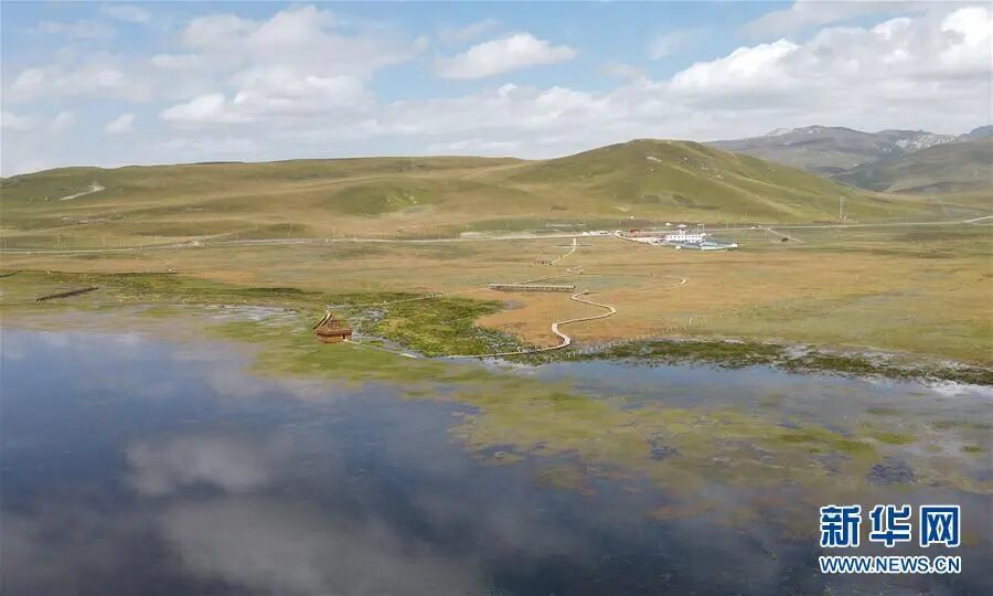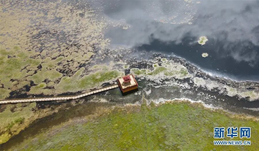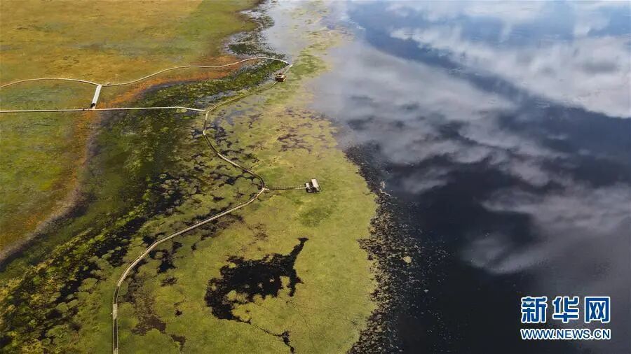 这是9月15日在甘肃省甘南藏族自治州碌曲县拍摄的尕海湖(无人机照片) 新华社记者 张智敏 摄