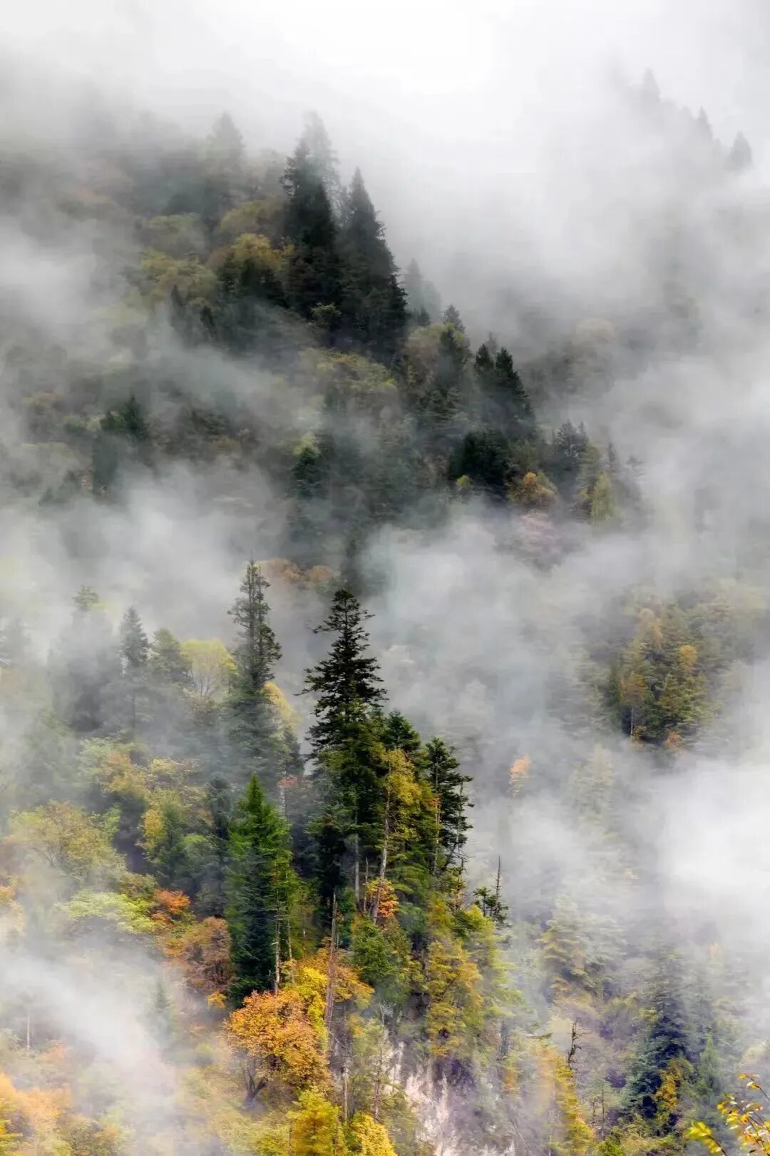 镶嵌在翠峰群山之中的十多处神采各异的湖泊,既有北国的雄浑之美,又有南国的秀丽之姿。五彩斑斓的原始森林层林尽染,红枫、黄栌、青松交织成锦绣画卷。