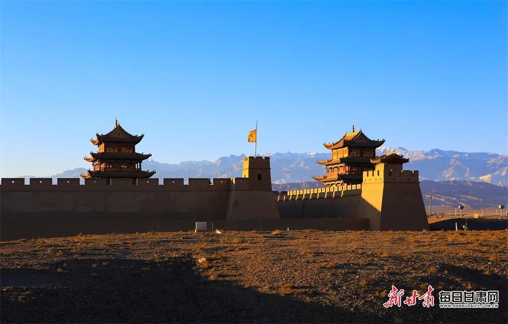 当阳光洒向嘉峪关关城,霞光万丈映苍穹,巍峨雄关晨曦如画,美不胜收。光与影在城墙上追逐嬉戏,明暗交错间,历史的厚重感扑面而来。