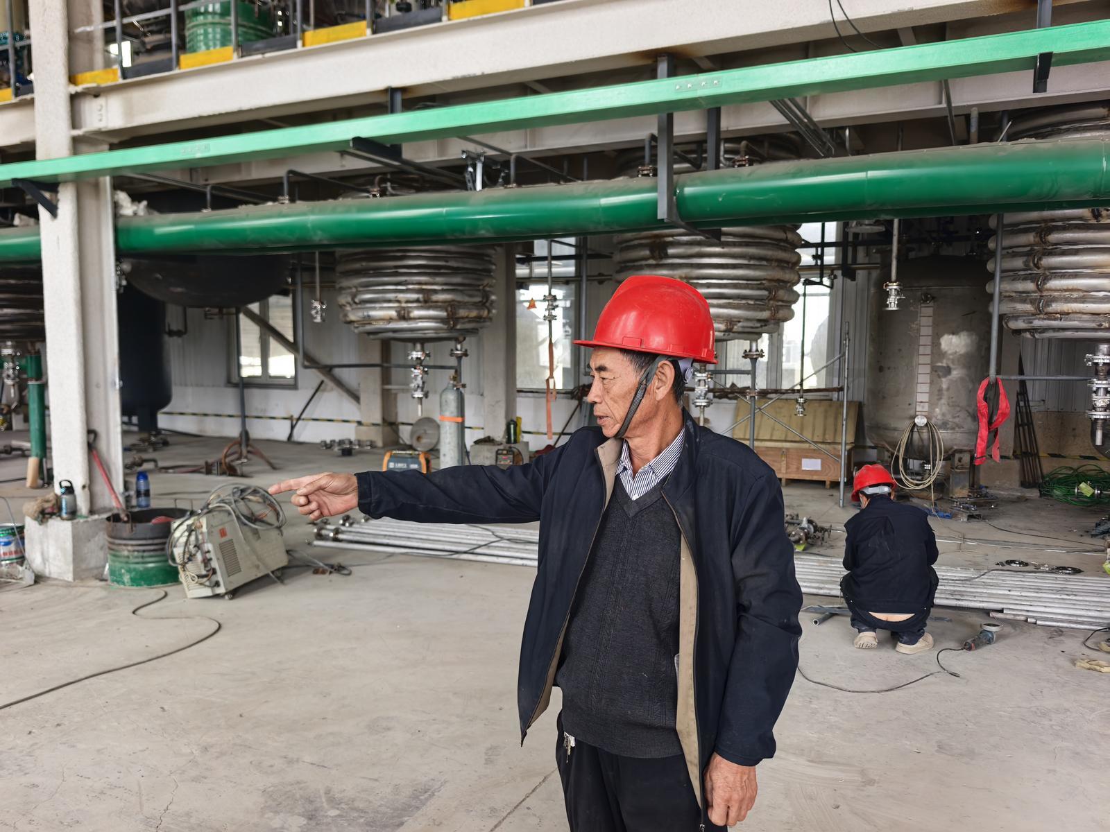 与马小龙一样,李中军也选择在国庆假期坚守岗位。他2024年从山东潍坊来到兰州新区,目前在兰州维泰新材料科技有限公司担任现场建设负责人。