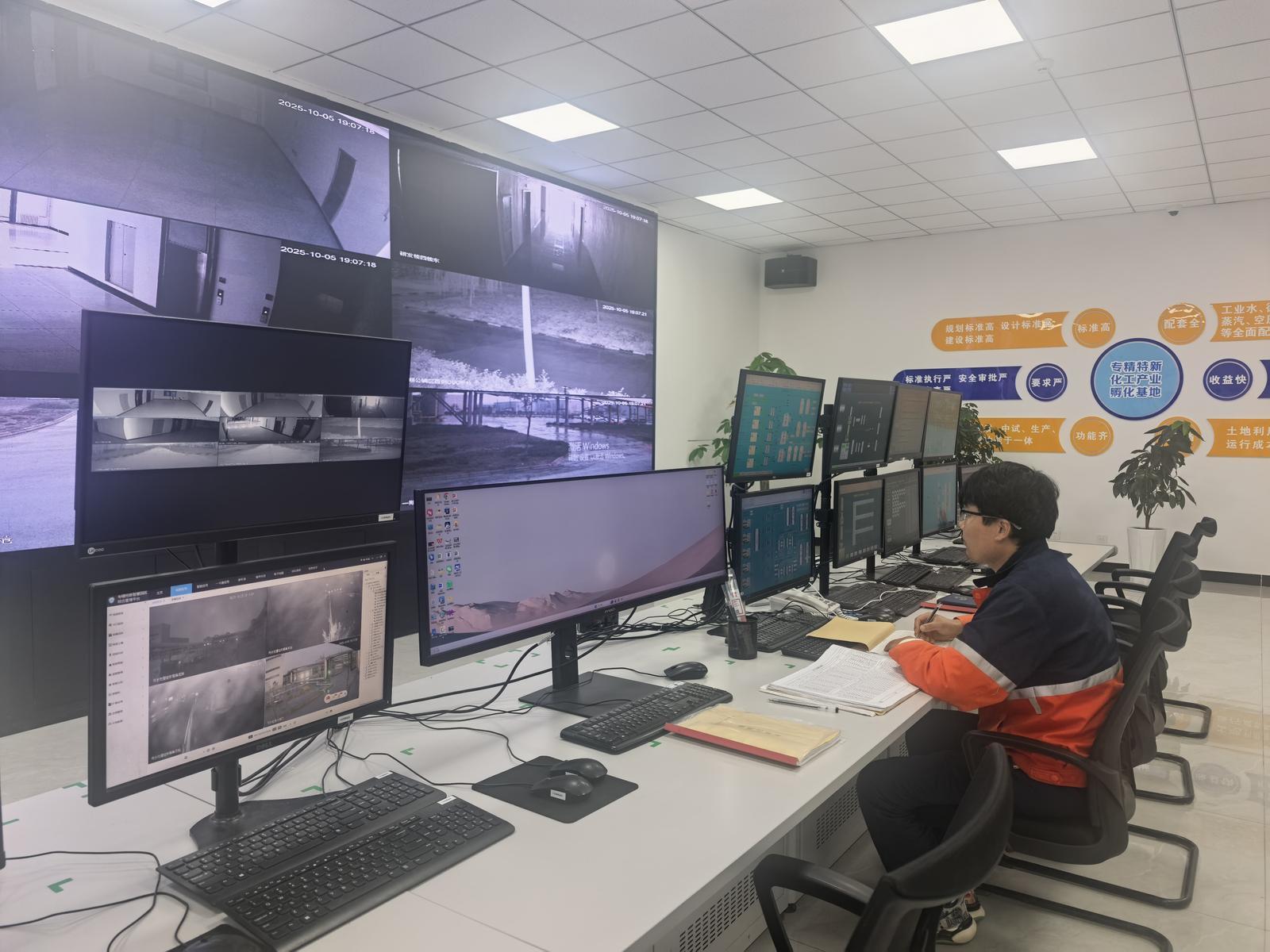 10月5日清晨6点,走进专精特新化工产业孵化基地中控室,映入眼帘的是一排排整齐的显示屏,上面密密麻麻地跳动着各类生产参数。