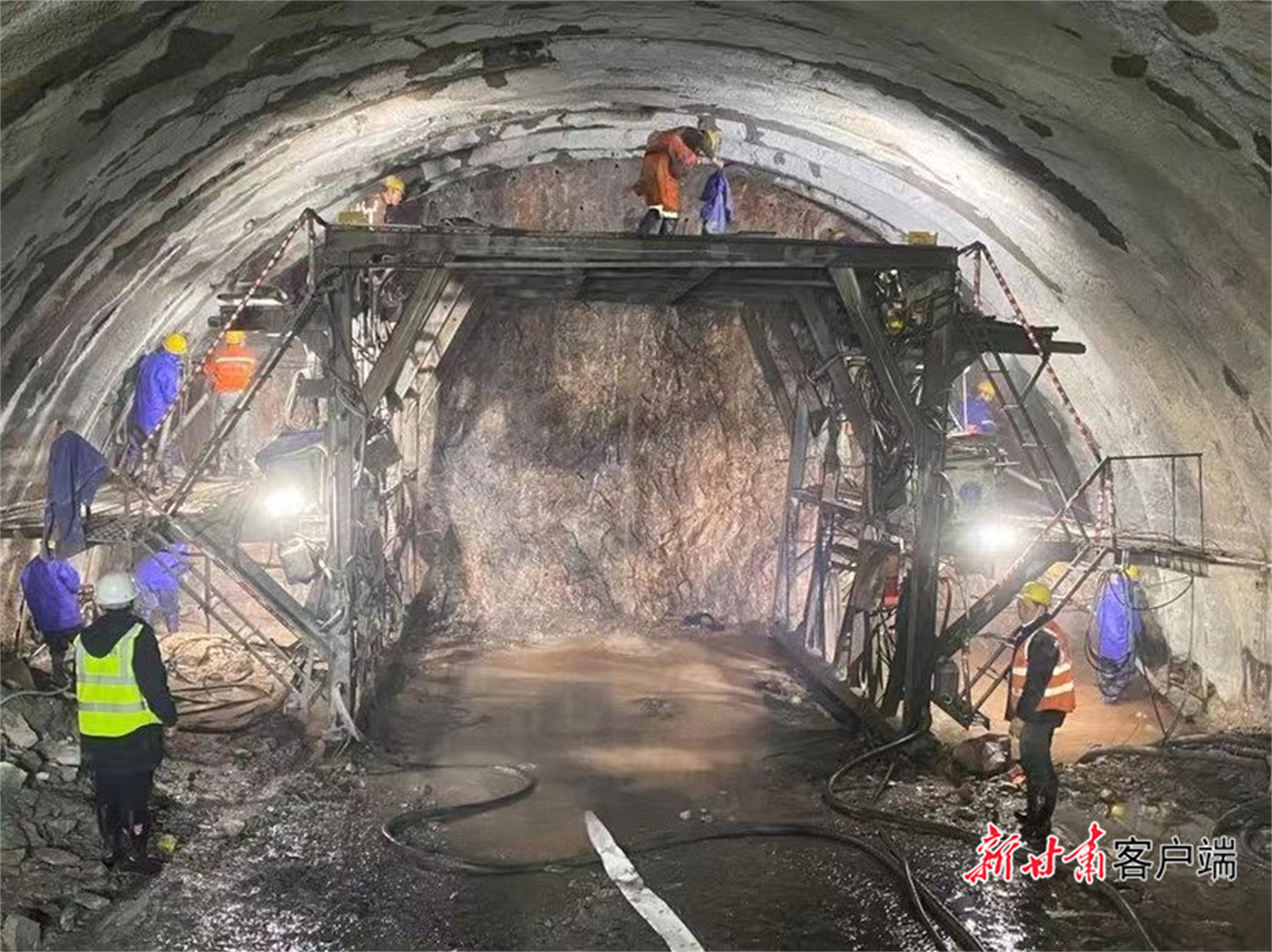 甘肃路桥建设者在康略高速连接线毛垭山隧道内施工