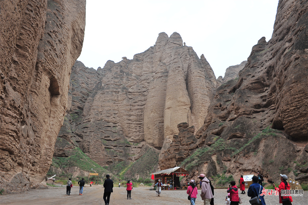 国庆中秋假期,景泰黄河石林景区内,游客们沿着饮马沟大峡谷蜿蜒曲折的步道深入其中,欣赏崖壁陡峭、谷底深邃的奇特地貌景观,一座座石柱形态各异,如刀劈斧削或神兽盘踞。新甘肃·每日甘肃网通讯员 寇明灿 摄影报道