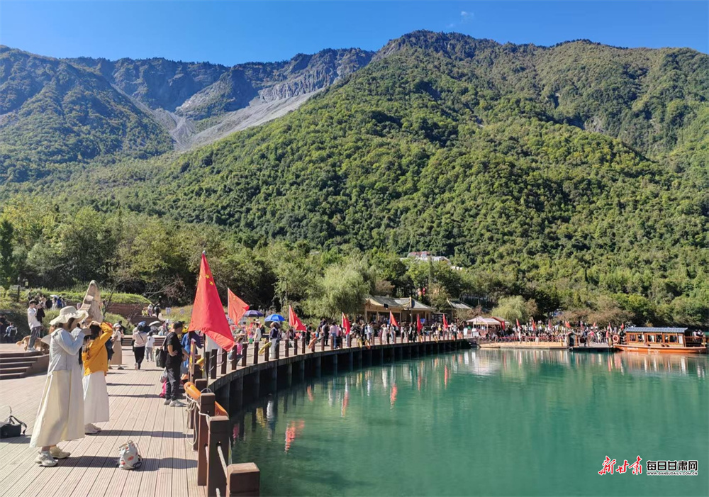 国庆中秋假期,文县天池澄澈如镜,红枫黄桦层林尽染、岸边国旗迎风飘扬,游客循着秋光而来,让这座高山湖泊盛满诗意与欢笑。新甘肃·每日甘肃网通讯员 刘玉玺 摄影报道
