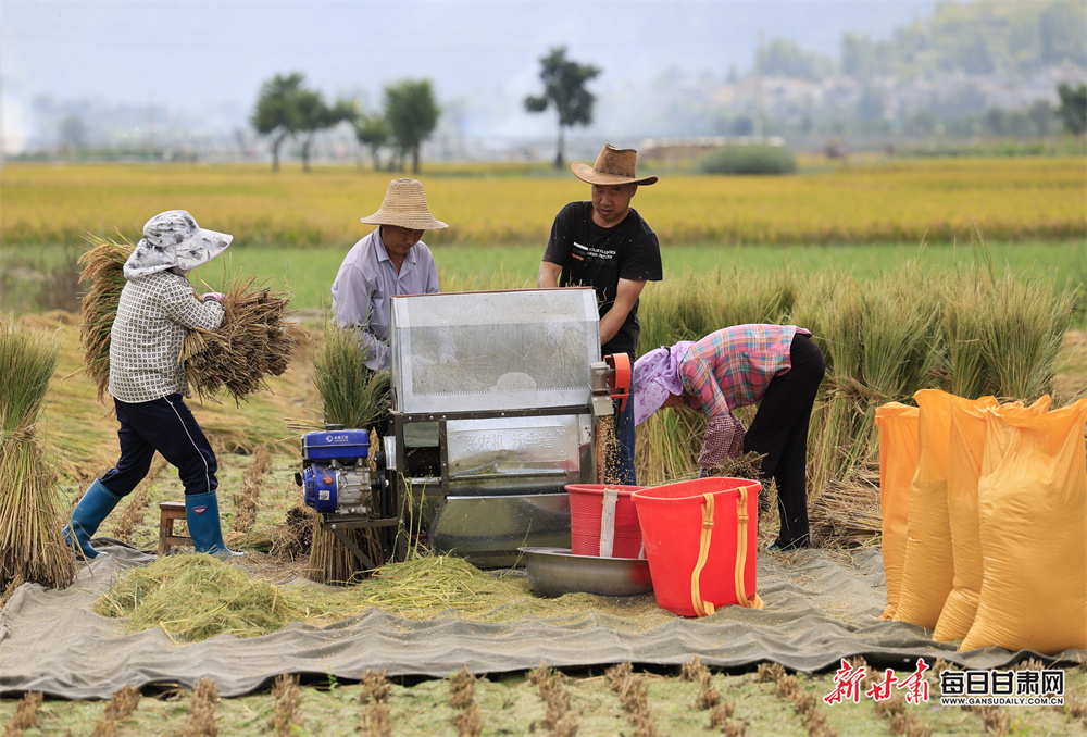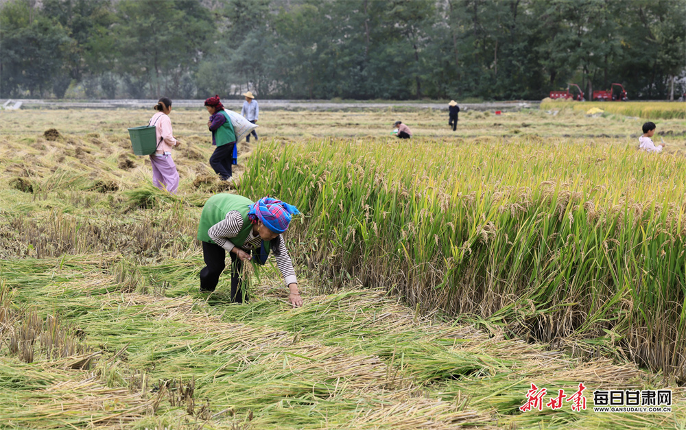原标题:【镜观陇原】喜看稻菽千重浪 武都角弓镇千亩稻田收割忙