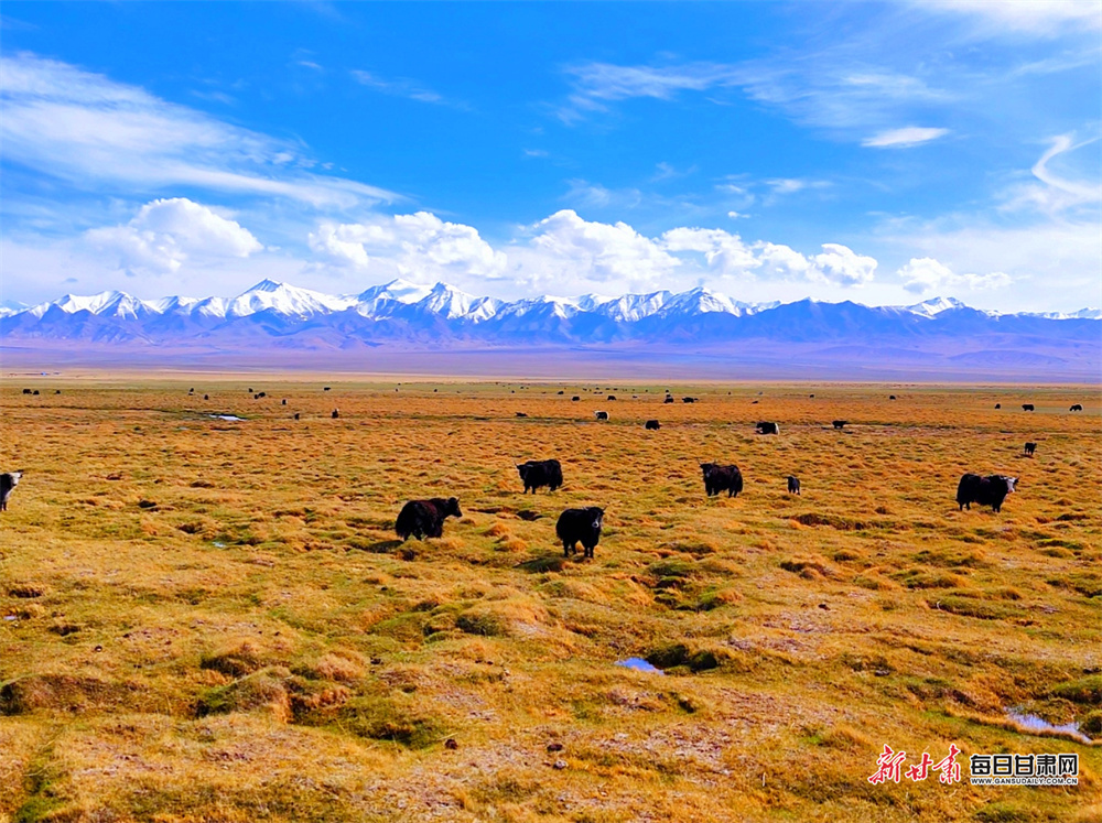 原标题:草原染金映雪山 肃北盐池湾美出圈